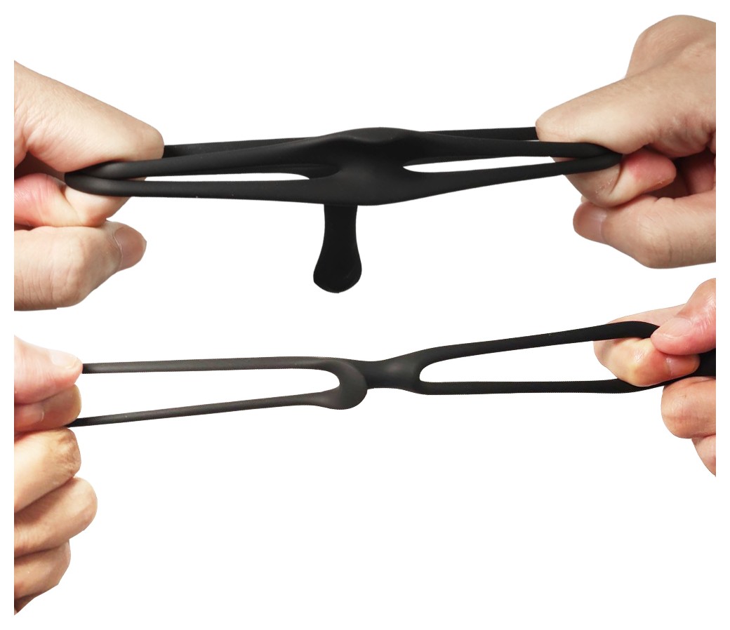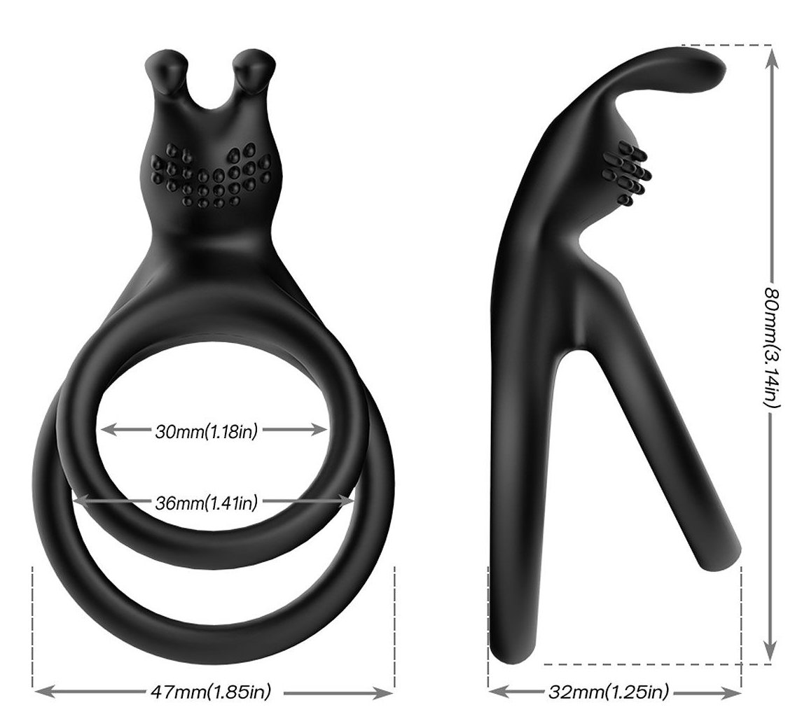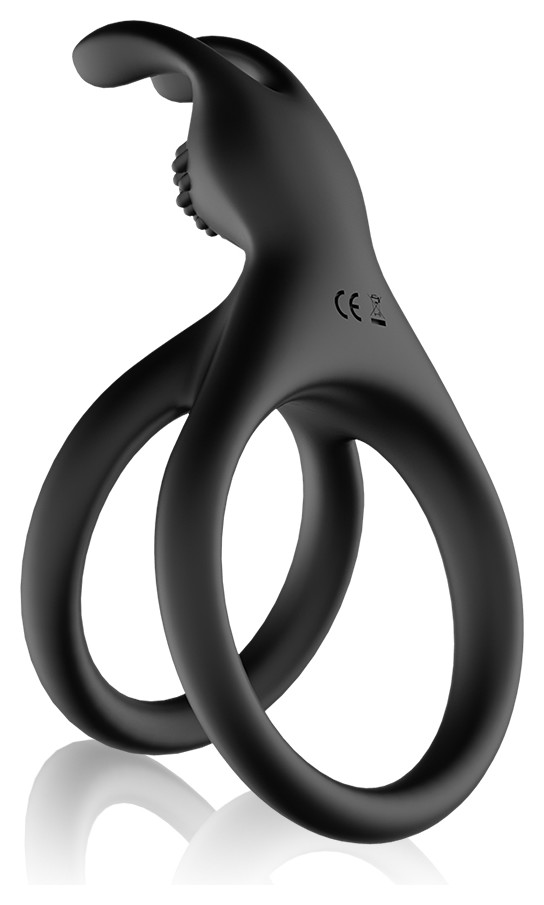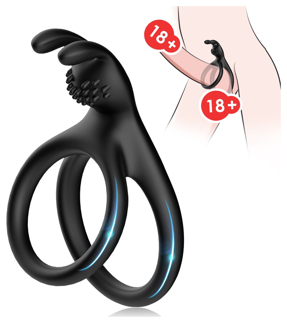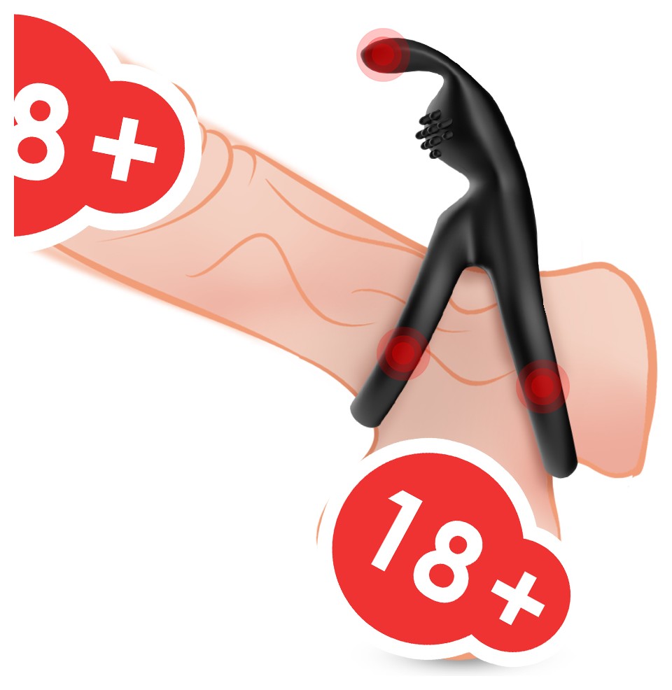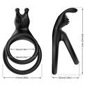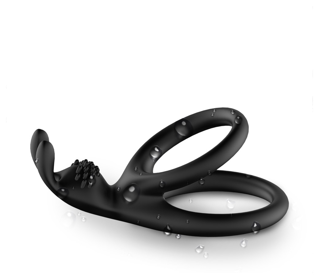 Эрекционное кольцо с дополнительным стимулятором клитора и дополнительным кольцом под мошонку. Внутренний диаметр колец - 3 и 3,6 см.