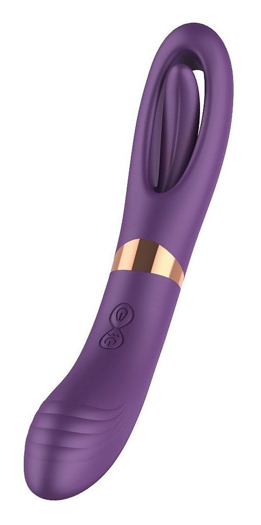 Вибратор двухсторонний для прямой стимуляции точки G. С одной стороны язычок, расположенный в верхней части вибратора, позволяет насладиться в полной мере 10 программами стимуляции. С другой стороны обычный 10 скоростной вибратор. Водонепроницаем. В комплекте магнитный зарядный кабель. Ширина - 4,5 см.