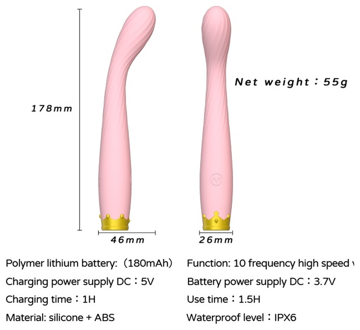 Вибратор для прямой стимуляции точки G. Моторчик, расположенный в верхней части вибратора, позволяет насладиться в полной мере 10 программами стимуляции. Водонепроницаем. В комплекте зарядный USB кабель.