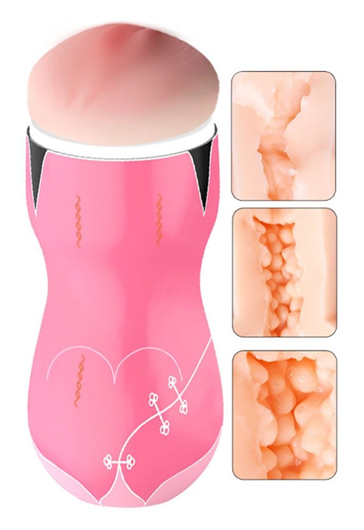 Реалистичный текстурированный мастурбатор-вагина в колбе с мягкими бороздками внутри для дополнительной стимуляции.