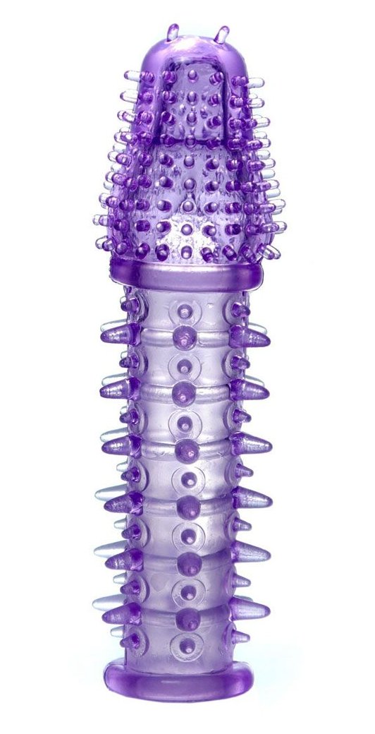 Фиолетовая закрытая насадка на пенис - 13,5 см