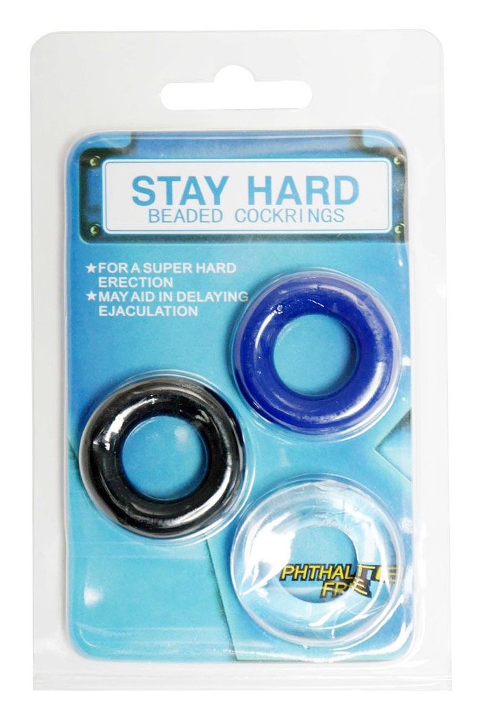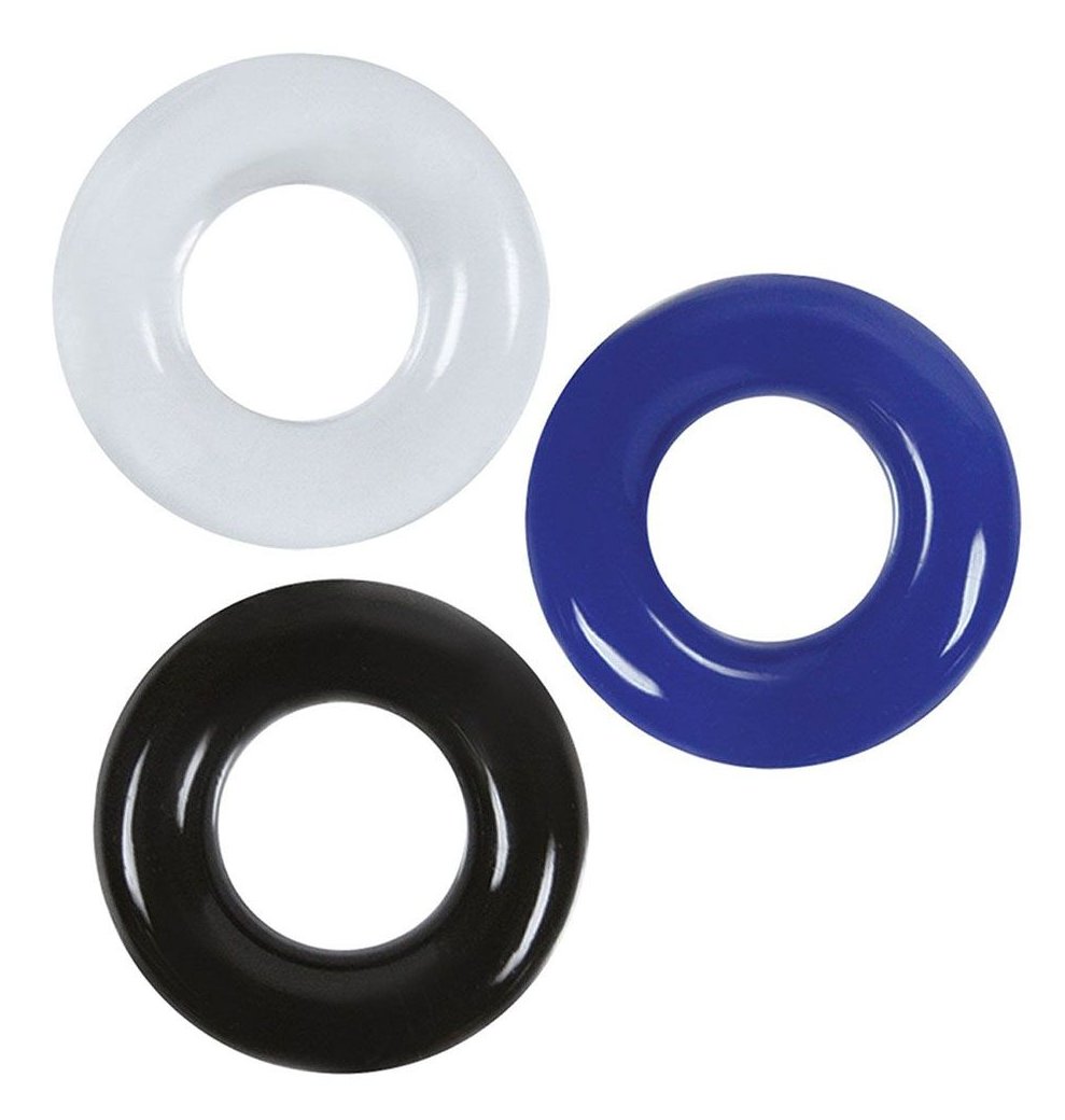 Эрекционные кольца изготовлены из очень эластичного силикона. Они подходят для любого пениса. Набор из 3 эрекционных колец прозрачного, голубого, черного цветов. Внутренний диаметр - 1,75 см.