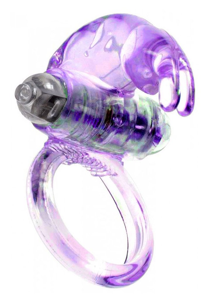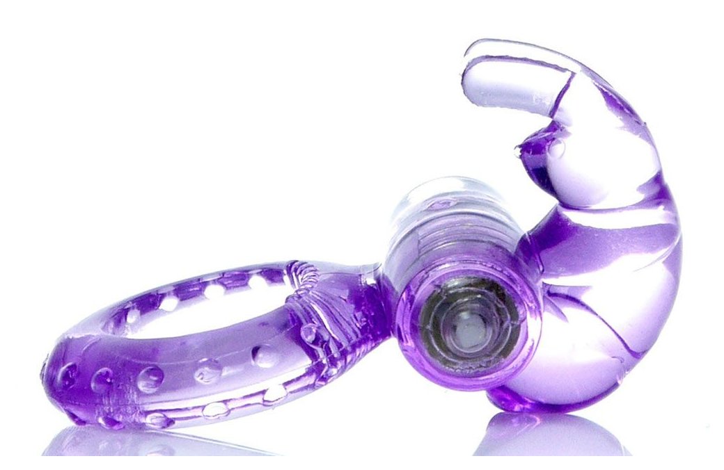 Сиреневое эрекционное виброкольцо с клиторальным зайчиком