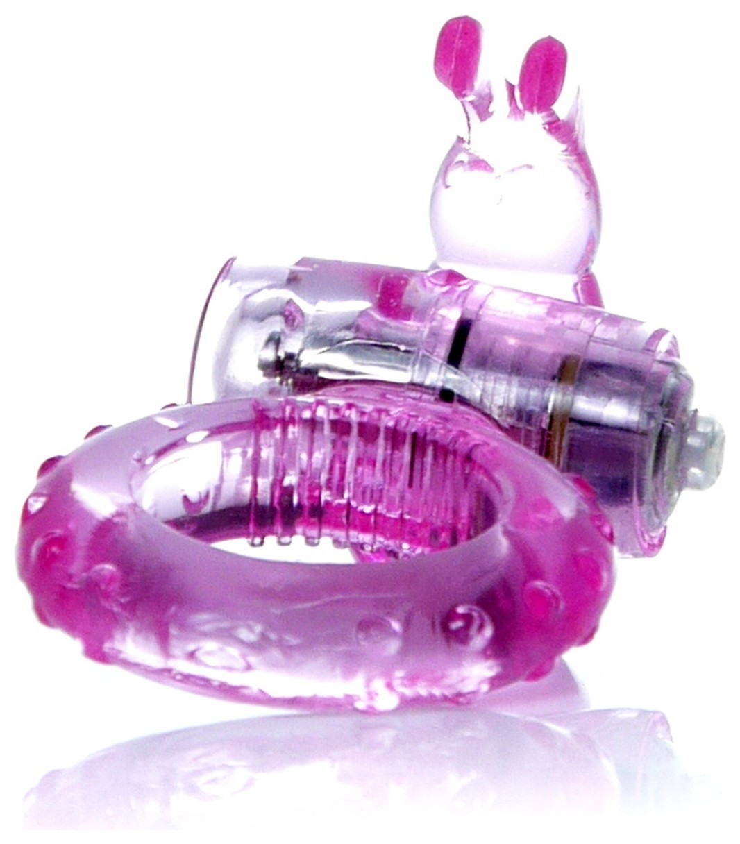 Розовое эрекционное виброкольцо с клиторальным зайчиком