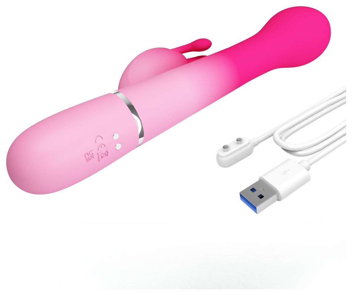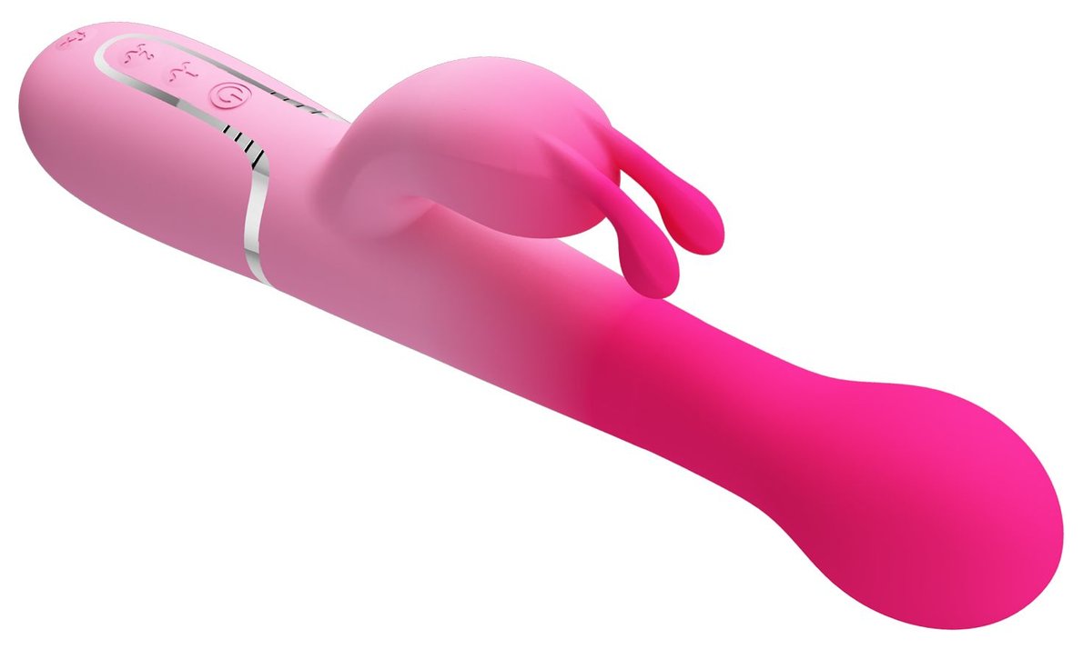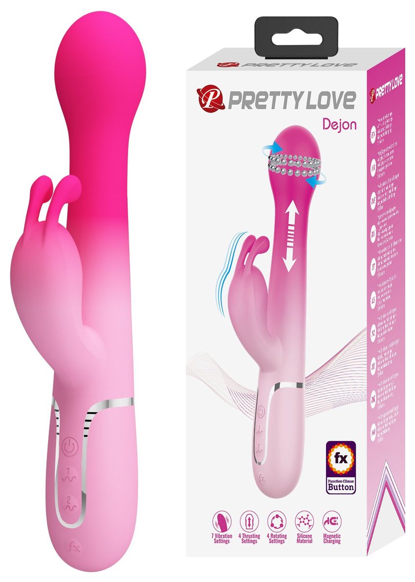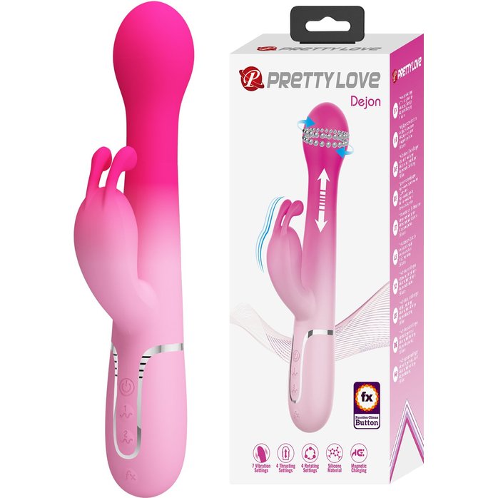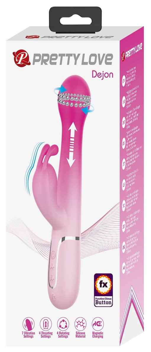 Розовый вибратор-кролик Dejon с ротацией бусин и возвратно-поступательными - 22,6 см