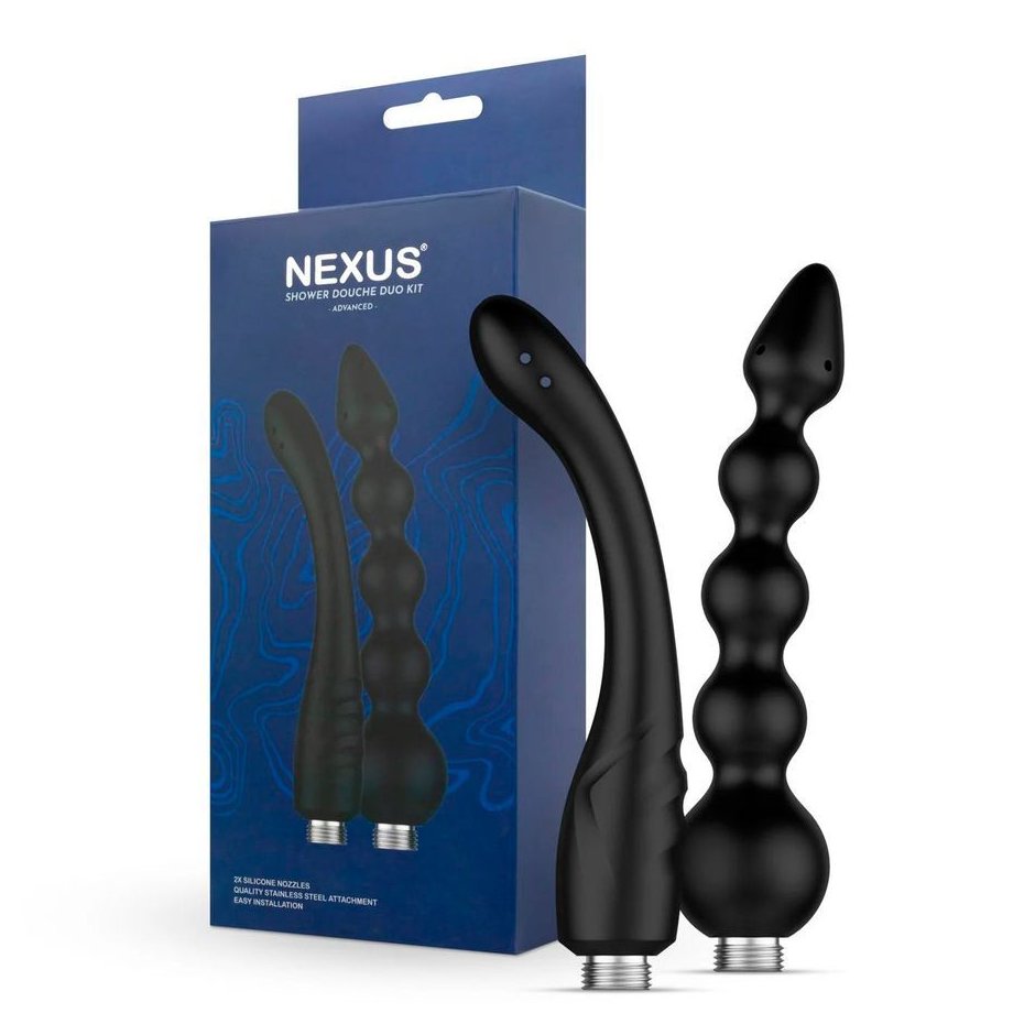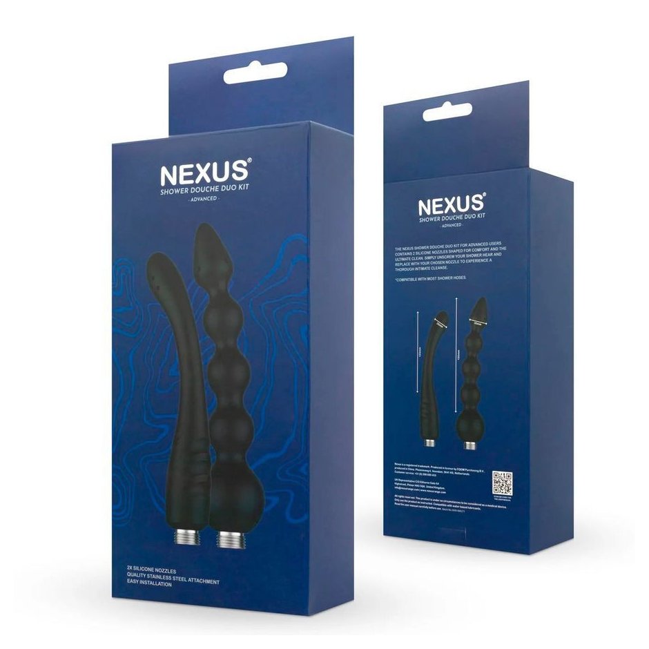 Набор для анального душа Nexus Shower Douche Duo для опытных пользователей содержит 2 силиконовые насадки, которые обеспечивают комфорт и максимальную чистоту. Просто открутите насадку для душа и замените её на выбранную вами насадку, чтобы тщательно очистить интимные зоны. Обе насадки прочные, но гибкие, с большими отверстиями по всему кончику. Рабочая длина фигурной насадки - 15 см, диаметр - 3 см. Рабочая длина классической насадки - 12,3 см, диаметр - 2,6 см.