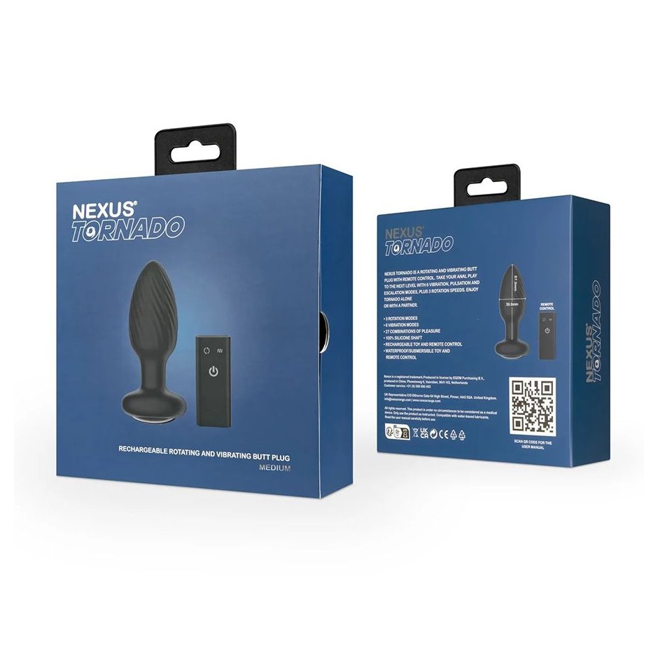 Nexus Tornado — это вращающаяся и вибрирующая анальная пробка с дистанционным управлением. Поднимите свою игру на новый уровень. В арсенале втулки 6 режимов вибрации, пульсации и усиления, а также 3 скорости вращения. Благодаря небольшому размеру она отлично подходит для новичков или для тех, кто хочет получить больше удовольствия и интересных ощущений от ротации. Пульт дистанционного управления работает на расстоянии до 8 метров, так что вы сможете наслаждаться Tornado в одиночку или с партнёром. Эта перезаряжаемая игрушка изготовлена из силикона высокого качества, а ее корпус полностью водонепроницаем и отлично подходит для игр в ванной или душе. Рабочая длина - 8,7 см.