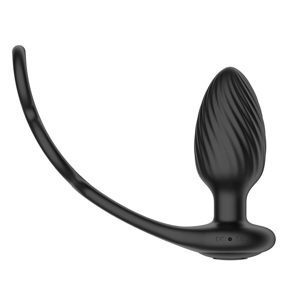 Черная анальная вибровтулка Tornado with Cock Ball Rings с эрекционными кольцами