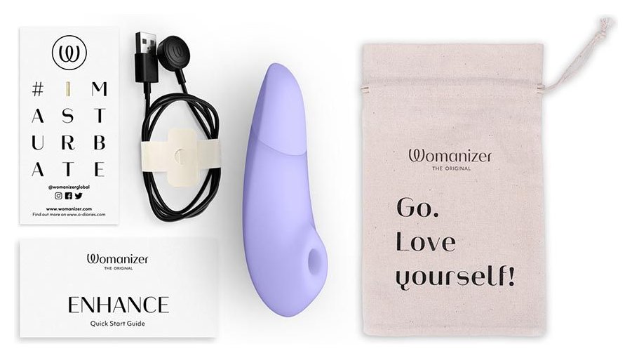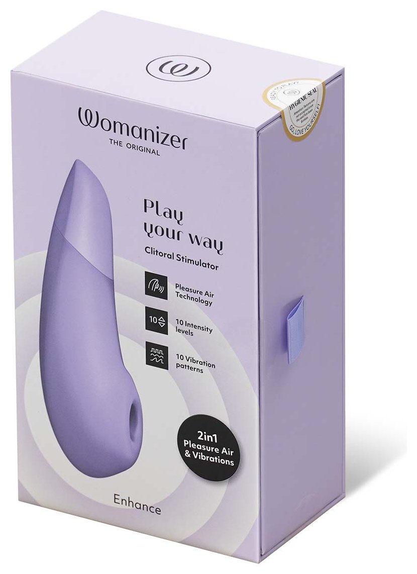 Первый клиторальный стимулятор Womanizer, сочетающий вибрацию We-Vibe и технологию Pleasure Air для усиления ощущений. Раздельные моторчики позволяют использовать эти виды стимуляции вместе или по отдельности, чтобы разнообразить ваше путешествие. В вашем распоряжении 10 уровней интенсивности Pleasure Air, 10 уровней мощности вибрации и 10 режимов вибрации, которые регулируются индивидуально, - более 1000 способов получить удовольствие с Womanizer Enhance. Переключать режимы для обоих видов стимуляции возможно вместе и или по отдельности, благодаря кнопкам на корпусе. Полный заряд достигается за 2 часа и обеспечивает до 120 минут работы моторчиков. Этот вибратор имеет более широкую интегрированную головку, которая стимулирует большую площадь поверхности, усиливая ощущения. Корпус покрыт мягким шелковистым силиконом, не содержит токсичных веществ и безопасен для кожи человека. Womanizer Enhance полностью водонепроницаем, поэтому подходит для игр в ванной или душе.