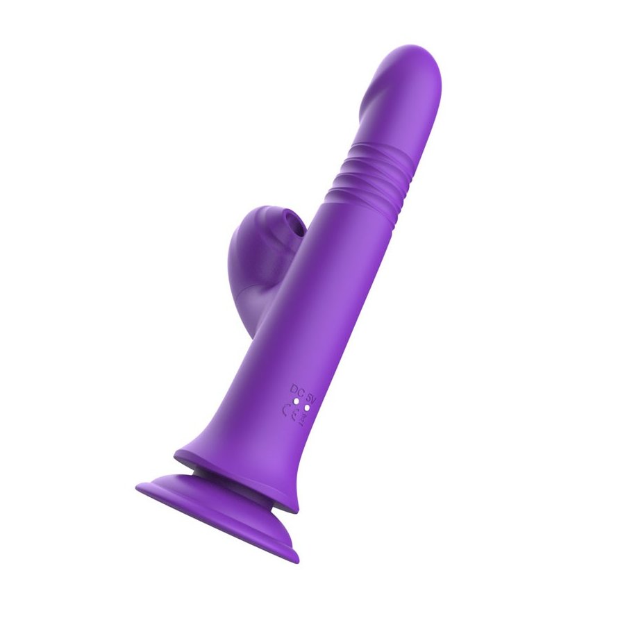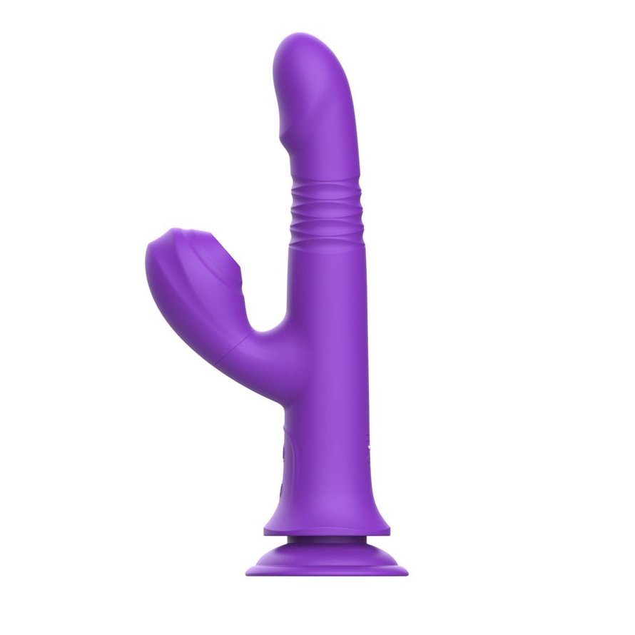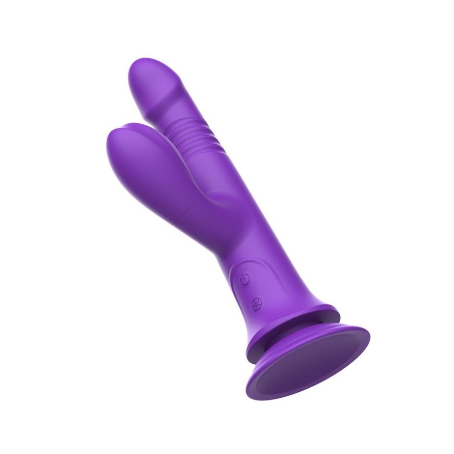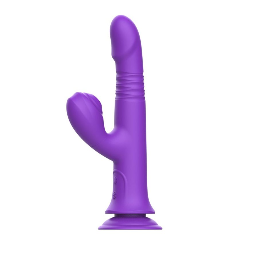 Фиолетовый вибратор-кролик на присоске - 23,8 см