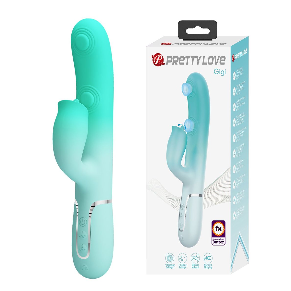 Мятный вибратор-кролик Gigi с возвратно-поступательными движениями - 22,8 см