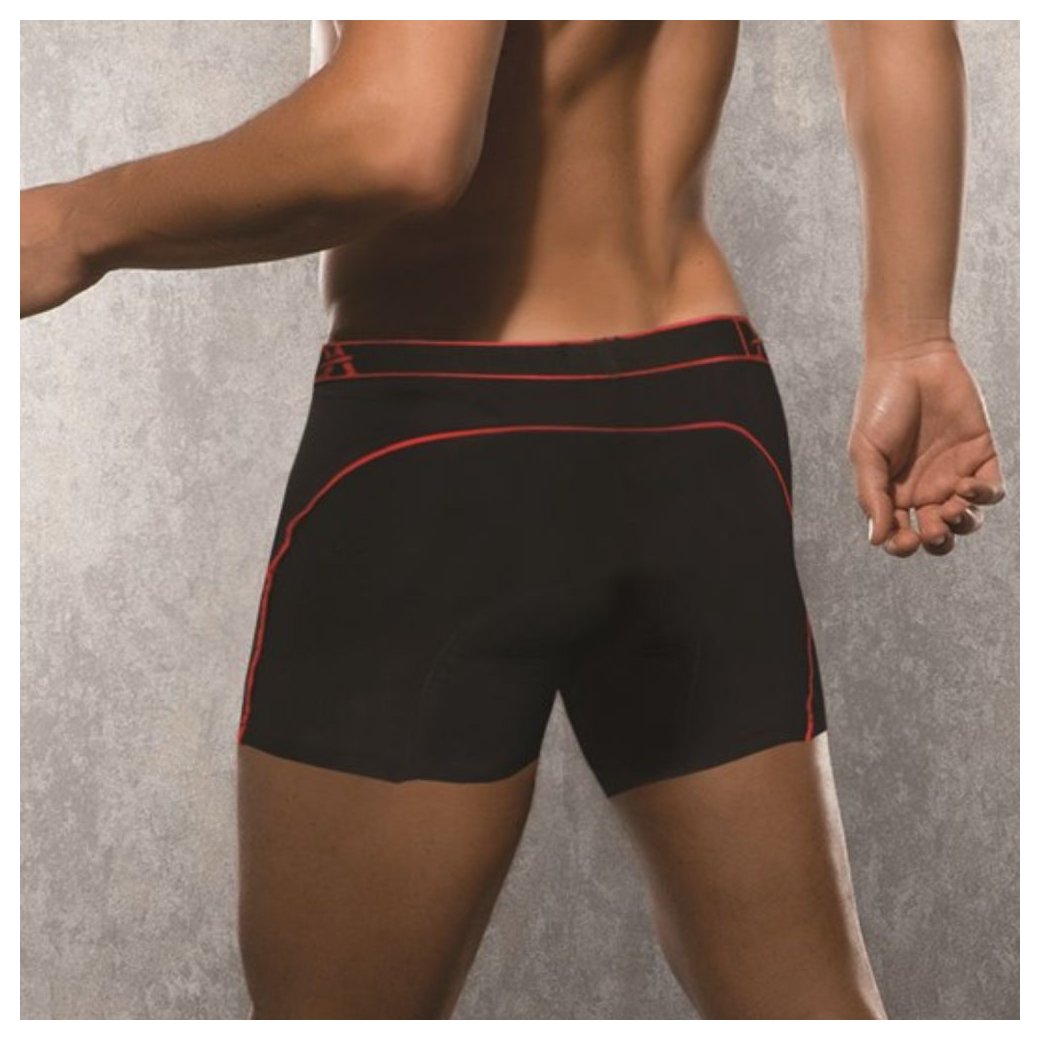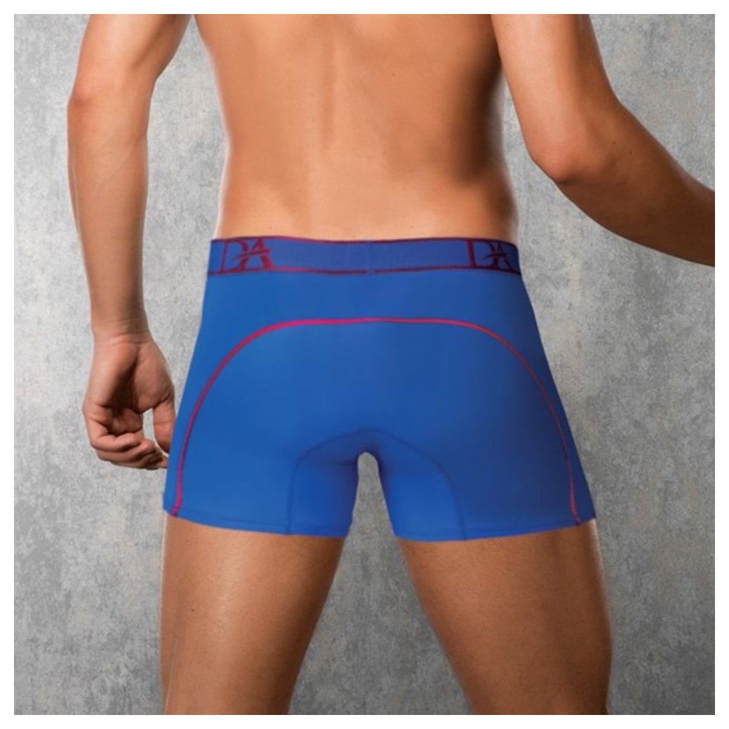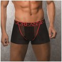 Мужские облегающие трусы-боксеры из тончайшего и легчайшего, почти невесомого шелковистого материала. Передняя панель однослойная, без подкладки, по краям декорирована интригующе-прозрачной сеточкой и ярко-красным кантом. На поясе пришивная резинка с ярко-красным фирменным логотипом бренда «Doreanse».