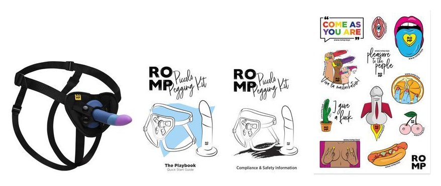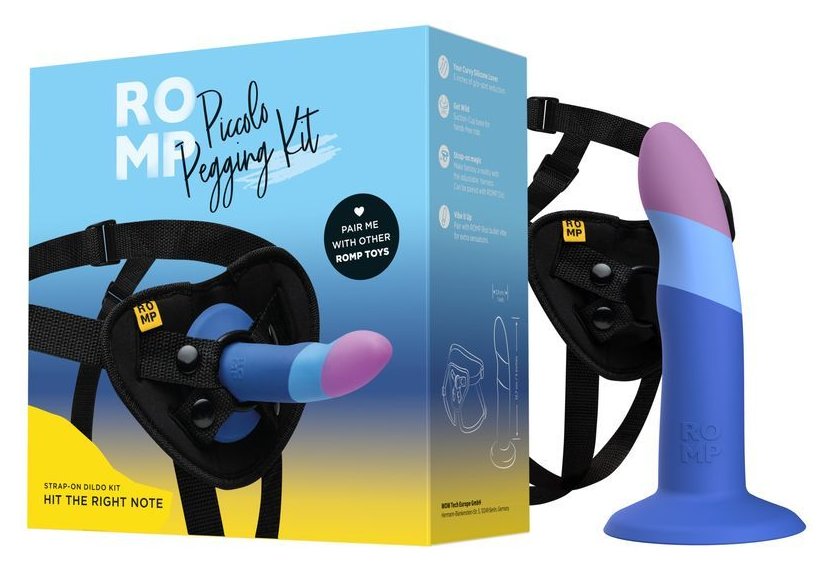 Набор Piccolo Pegging Kit состоит из фаллоимитатора и регулируемого ремня для страпона. Фаллоимитатор Romp Piccolo изготовлен из мягкого шелковистого силикона и имеет изогнутую форму, которая идеально подходит для стимуляции точки G или точки P. Он подойдёт как начинающим, так и опытным любителям интимных развлечений. У Romp Piccolo широкое основание с присоской, благодаря которой его можно закрепить на любой гладкой и ровной поверхности. Это позволит наслаждаться удовольствием без помощи рук и экспериментировать с разными позами и ракурсами. Фаллоимитатор легко вставляется в предназначенное для него отверстие на поясе для страпона и надёжно закрепляется кольцом. Ремни пояса оснащены регуляторами, которые позволяют подогнать крепление под нужный размер. Систему для страпона можно стирать в машине.