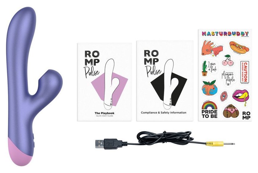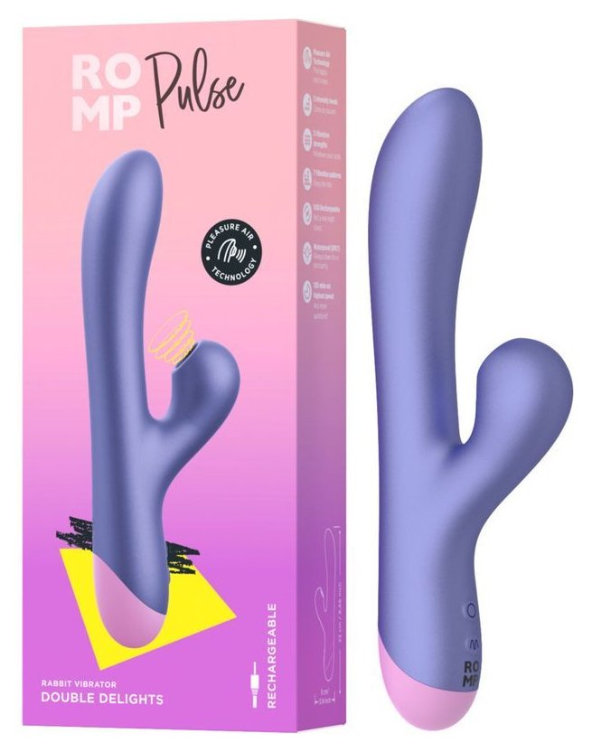 ROMP Pulse — это вибратор-кролик с функцией стимуляции клитора Pleasure Air и внутренней вибрацией точки G. Экспериментируйте с двумя моторами, чтобы погрузиться в интенсивные ощущения и подобрать ключ к своему удовольствию. Отрегулируйте настройки, чтобы найти идеальный баланс между интенсивностью и ритмом, и получить поистине захватывающие ощущения. В этой игрушке два отдельных мотора, которые регулируются кнопками на корпусе. Двигатель в вибраторе для точки G оснащен 3 уровнями интенсивности и 7 рисунками. А двигатель для стимуляции Pleasure Air порадует вас 10 режимами и 5 уровнями давления воздуха. Игрушка покрыта мягким водонепроницаемым силиконов и полностью заряжается за 120 минут, обеспечивая до 120 минут игры.
