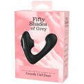 Погрузитесь в изысканные ощущения от технологии Pleasure Air, стимуляции клитора всасыванием и эйфорических волнообразных движений стержня, направленного на точку G. Этот многофункциональный вибратор изготовлен из силикона высокого качества и имеет водонепроницаемость класса IPX7. Это значит, что ее можно использовать в душе и мыть, но не погружать под воду на долгое время. Благодаря подвижному стержню, вы сможете отрегулировать посадку и подстроить стимулятор под особенности своего тела. Плотное прилегание и надежная фиксация позволит наслаждаться Greedy Girl Duet даже без рук. Длина вибратора - 12,5 см, диаметр - 3 см. Длина клиторального стимулятора - 10,5 см.