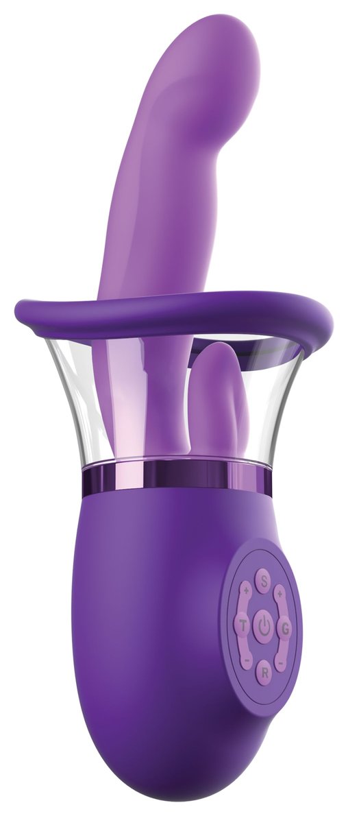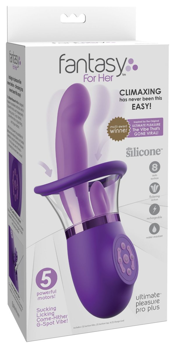 Ultimate Pleasure Pro Plus— силиконовый стимулятор с функциями всасывания, вибрации и лизания. Устройство с 5 моторами для максимальной функциональности: G-кнопка: два мотора для функции фингеринга и вибрации в зоне G-точки. 5 режимов × 5 уровней интенсивности = 25 вариантов стимуляции. T-кнопка: два мотора для имитации движений языком и вибрации на клиторе. 5 режимов × 5 уровней интенсивности = 25 вариантов стимуляции. S-кнопка: один мотор управляет вакуумной стимуляцией. 5 режимов всасывания. R-кнопка: функция мгновенного сброса вакуума. Возможность комбинирования всех режимов обеспечивает тысячи вариантов пользовательского опыта. Рабочая длина - 14 см. Диаметр отростка - 3,3 см.