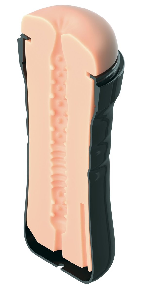 Мастурбатор в пластиковой колбе с входом в виде реалистичной, анатомически детализированного ануса. Игрушка самосмазывающаяся — для активации смазки достаточно добавить немного воды. Вставка выполнена из мягкого, эластичного TPR-материала, приятного на ощупь, без постороннего запаха. Легко растягивается, адаптируясь под индивидуальные особенности. Колба изготовлена из прочного пластика ABS. Внутренняя поверхность мастурбатора имеет рельефную, ребристую структуру для яркой и интенсивной стимуляции.