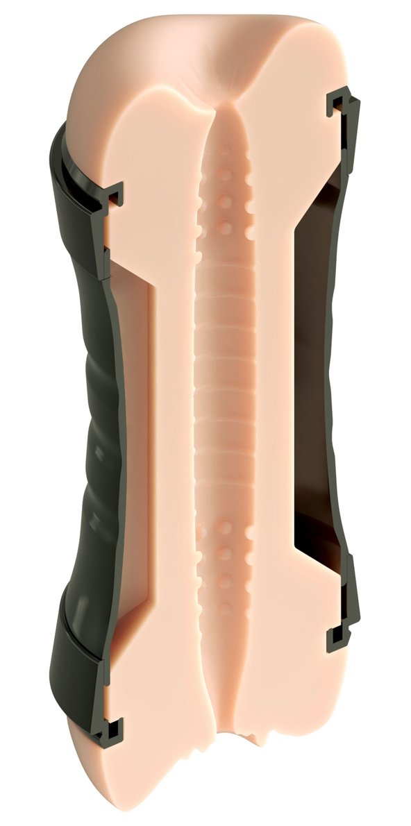 Мастурбатор в пластиковой колбе с входом в виде реалистичной, анатомически детализированной вагины. Игрушка самосмазывающаяся — для активации смазки достаточно добавить немного воды. Вставка выполнена из мягкого, эластичного TPR-материала, приятного на ощупь, без постороннего запаха. Легко растягивается, адаптируясь под индивидуальные особенности. Колба изготовлена из прочного пластика ABS. Внутренняя поверхность мастурбатора имеет рельефную, ребристую структуру для яркой и интенсивной стимуляции.