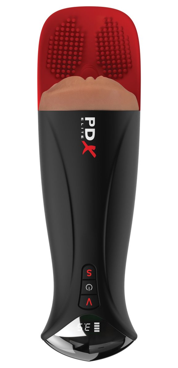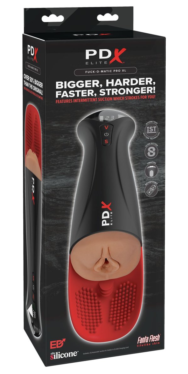 PDX Elite Fuck-O-Matic Pro XL – увеличенный мастурбатор с технологией прерывистого всасывания и вибрацией для персонализированных сольных сессий. Мягкие стимуляторы обеспечивают дополнительную стимуляцию, а съемная вставка из ультрамягкого материала создает реалистичные ощущения. Корпус в бежевом, черном и красном цветах оснащен LED-дисплеем для удобного выбора режимов. Прерывистое всасывание: 5 режимов для автоматического движения. Вибрация: 5 режимов для индивидуальной настройки. LED-дисплей отображает режимы всасывания (1-5) и вибрации (1-5). Рабочая длина - 16,5 см.
