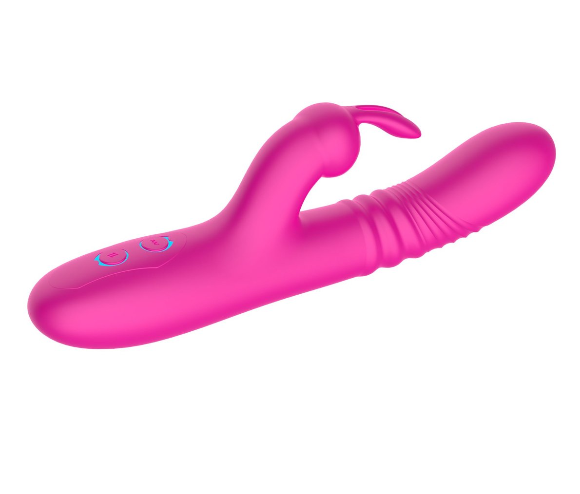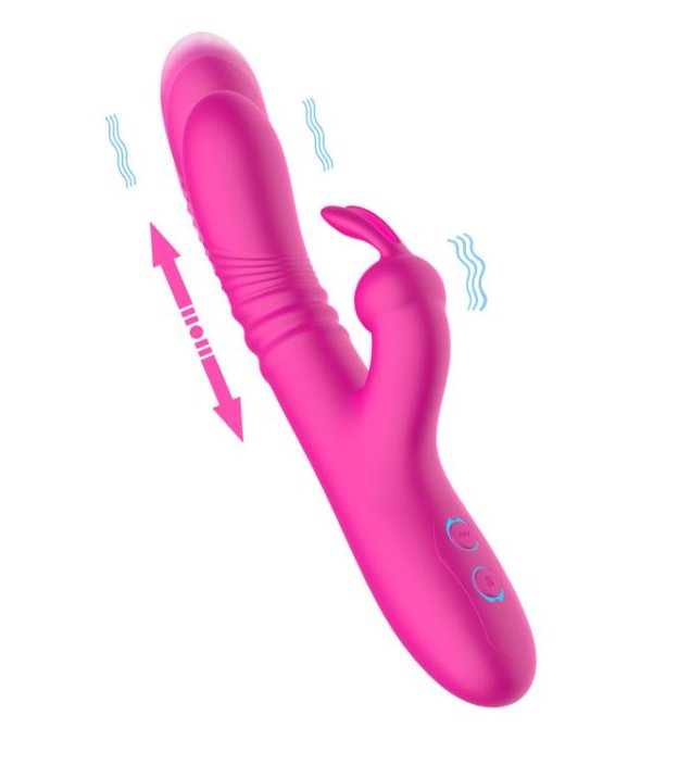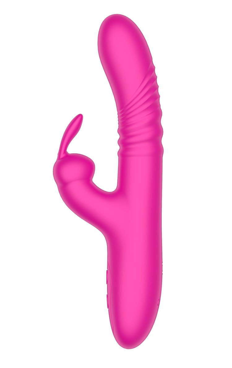 Розовый вибратор-кролик с функцией поступательных движений - 24,3 см
