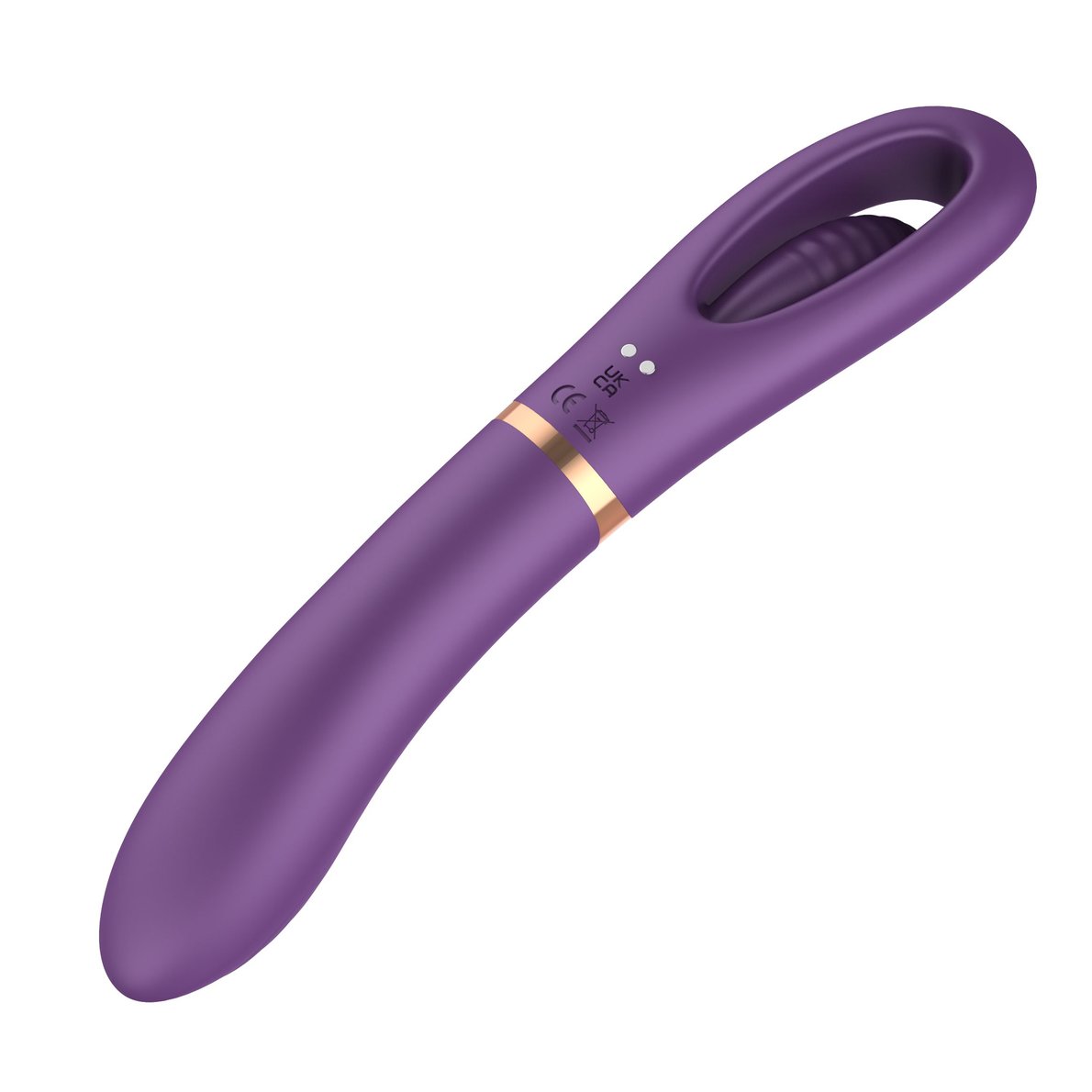Фиолетовый силиконовый вибратор с функцией фингеринга - 23,5 см