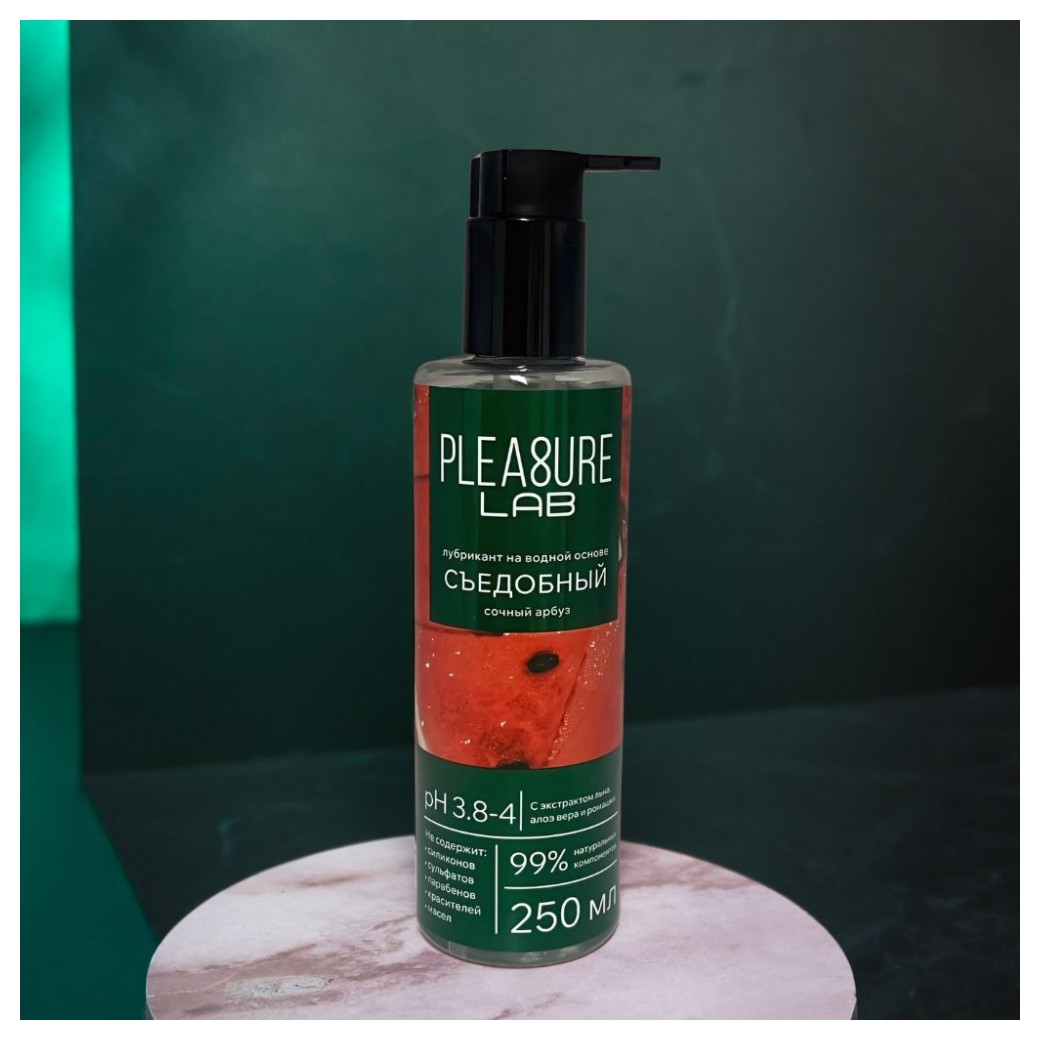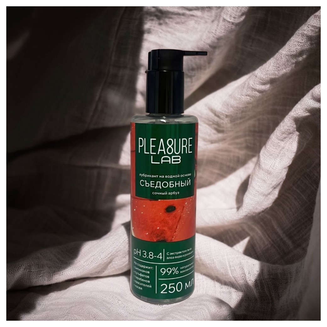 Лубрикант на водной основе Pleasure Lab с сочным ароматом спелого арбуза дарит свежесть и легкость в интимные моменты. Его нежный вкус дополнительно усиливает удовольствие, превращая близость в по-настоящему чувственное наслаждение. Формула основана на натуральных компонентах. Экстракт алоэ вера интенсивно увлажняет и успокаивает кожу, устраняя раздражение. Экстракт ромашки обладает выраженными противовоспалительными свойствами, обеспечивая дополнительную защиту и комфорт. Экстракт льна, насыщенный омега-3 жирными кислотами, глубоко питает и смягчает кожу, предотвращая сухость. Не содержит силиконов, сульфатов, парабенов, красителей и масел. Смазка с оптимальным pH соответствует естественному балансу слизистых, поддерживает здоровую микрофлору и предотвращает воспаления. Идеальна для чувствительной кожи, обеспечивая комфорт и защиту.