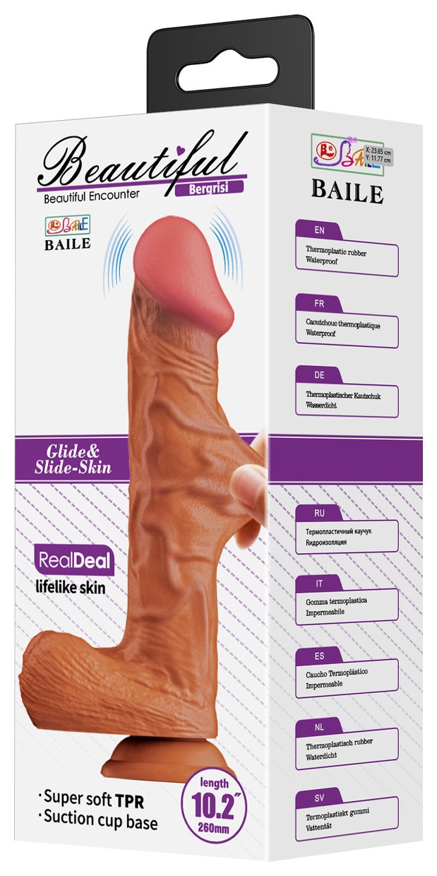 Темно-бежевый вибратор-реалистик Berqrisi на присоске - 26 см