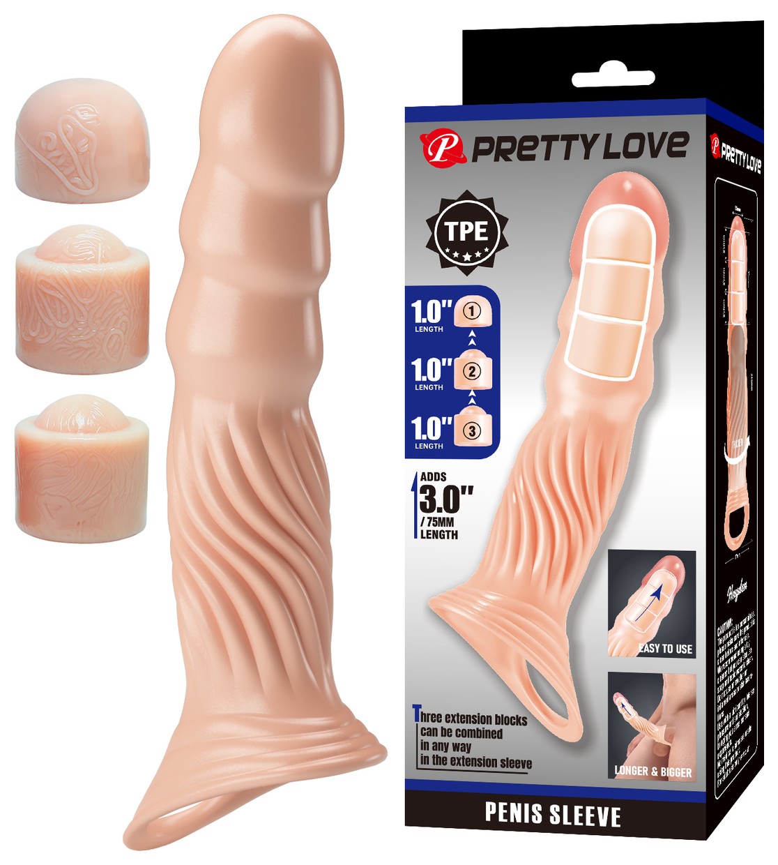 Телесная насадка на пенис с тремя вкладышами-удлинителями - 24 см