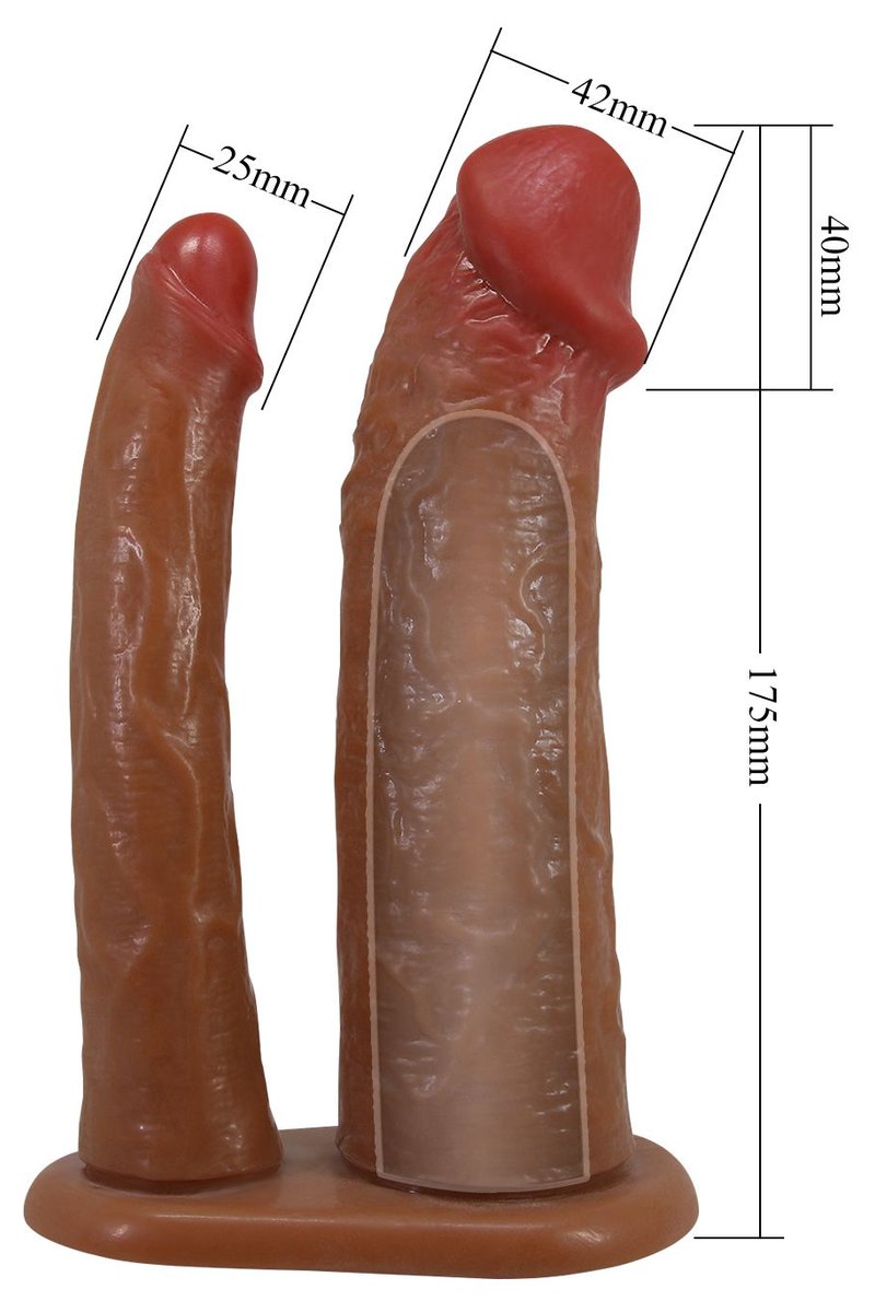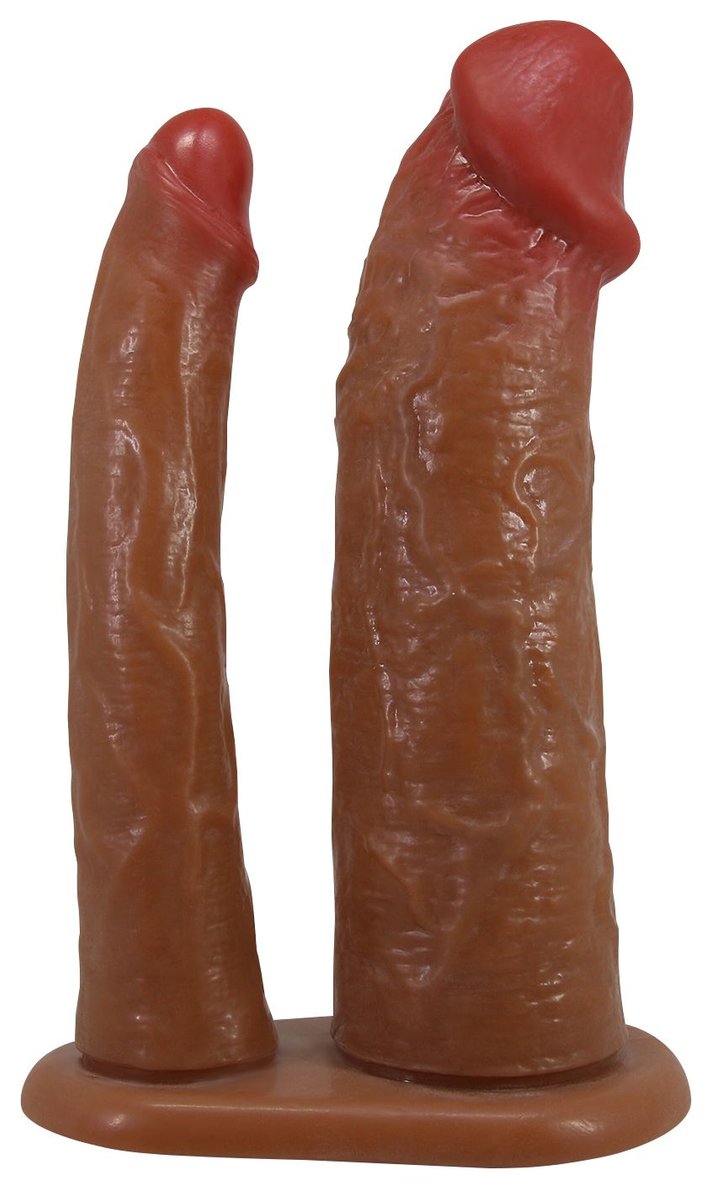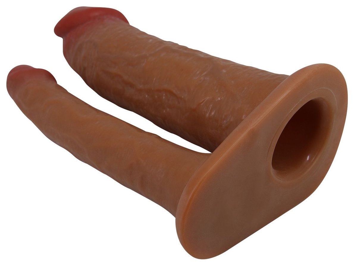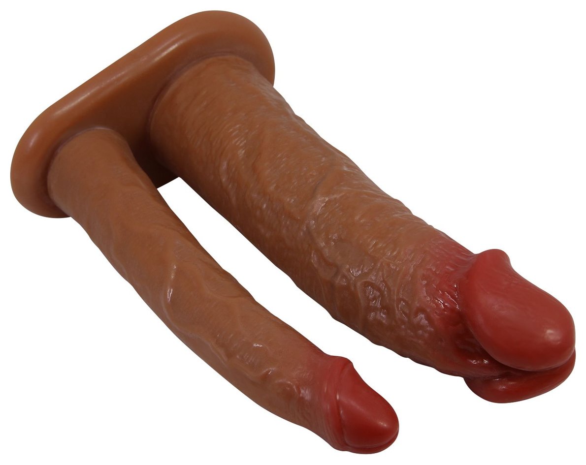 Темно-бежевый фаллопротез для двойного проникновения - 17,5 см