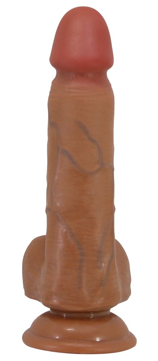 Изогнутый фаллоимитатор из TPR для стимуляции точки G. Реалистичная форма с головкой, венами и яичками. Присоска крепится к любой поверхности. Рабочая длина - 15,5 см.
