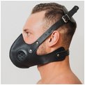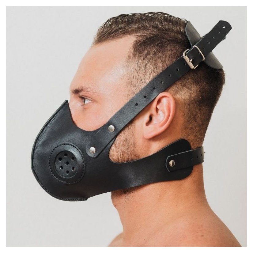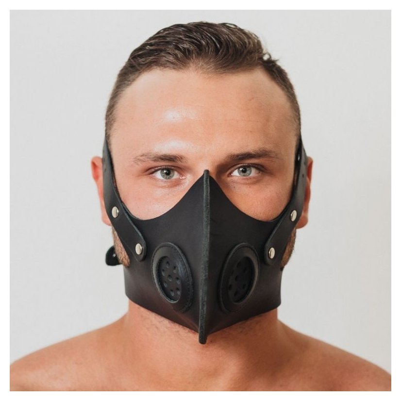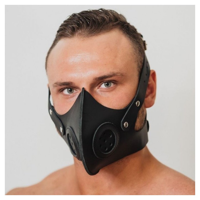 Маска из натуральной кожи черного цвета со вставками по бокам, имитирующими фильтры противогаза, придающие образу соответствующий антураж. Маска надежно фиксируется на голове, отлично подходит для продолжительных ролевых игр.