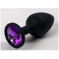 Черная силиконовая анальная пробка с фиолетовым стразом - 7,1 см