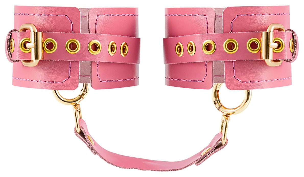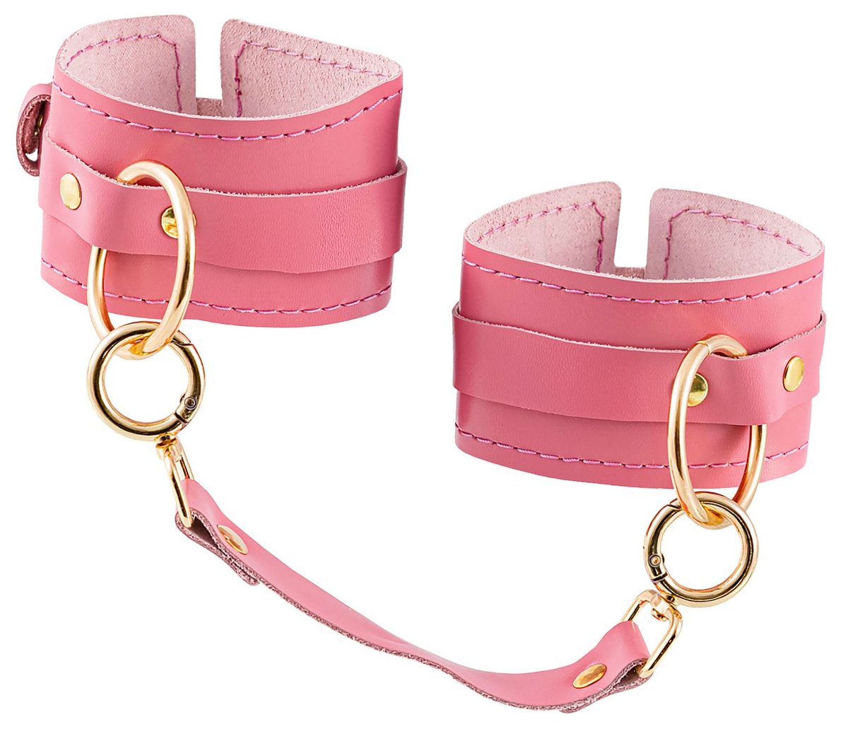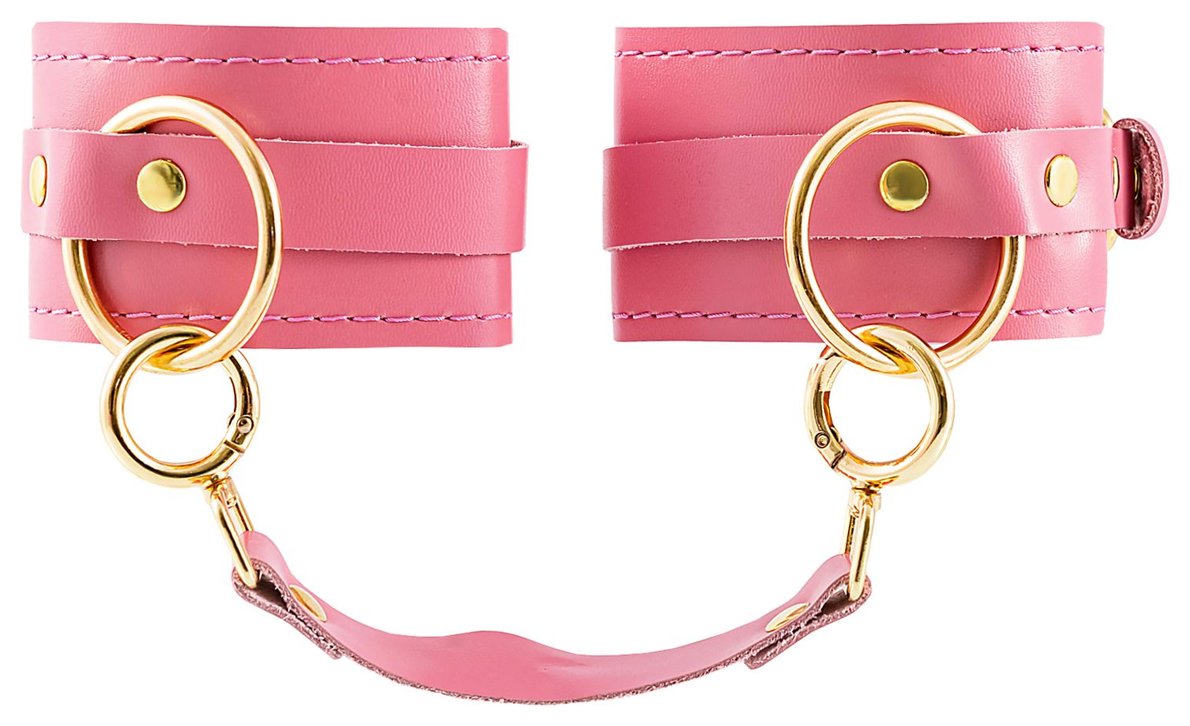 Готовы играть по-взрослому? Не бойтесь своих желаний! Основатели бренда уверены: лучший способ избавиться от искушения - поддаться ему! Добавьте пикантную деталь в ролевую игру и воплотите самую смелую сексуальную фантазию в реальность! Эти однослойные кожаные розовые оковы со строчкой в тон кожи могут стать стильным аксессуаром, а могут послужить вашим целям по своему прямому назначению. Частичное обездвиживание и невозможность двигать руками или ногами дают вам полную власть над партнером – взрослые игры для взрослых. Наличие двух колец и карабинов, соединенных между собой кожаным ремешком, позволяет использовать изделие как раздельно – аксессуар-манжеты, так и как оковы для фиксации. К широким металлическим кольцам также можно присоединить и другие аксессуары при помощи карабинов. Благодаря универсальному размеру оковы могут использоваться и мужчинами, и женщинами.