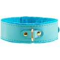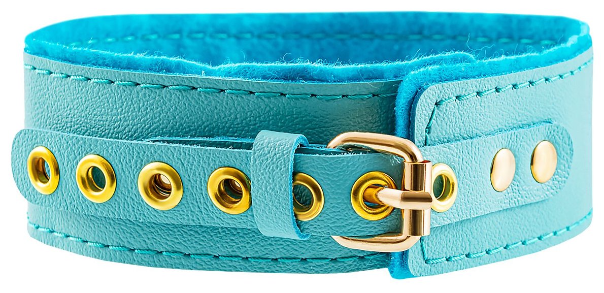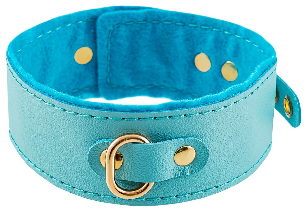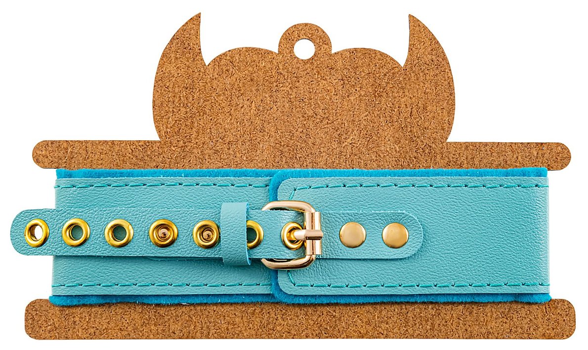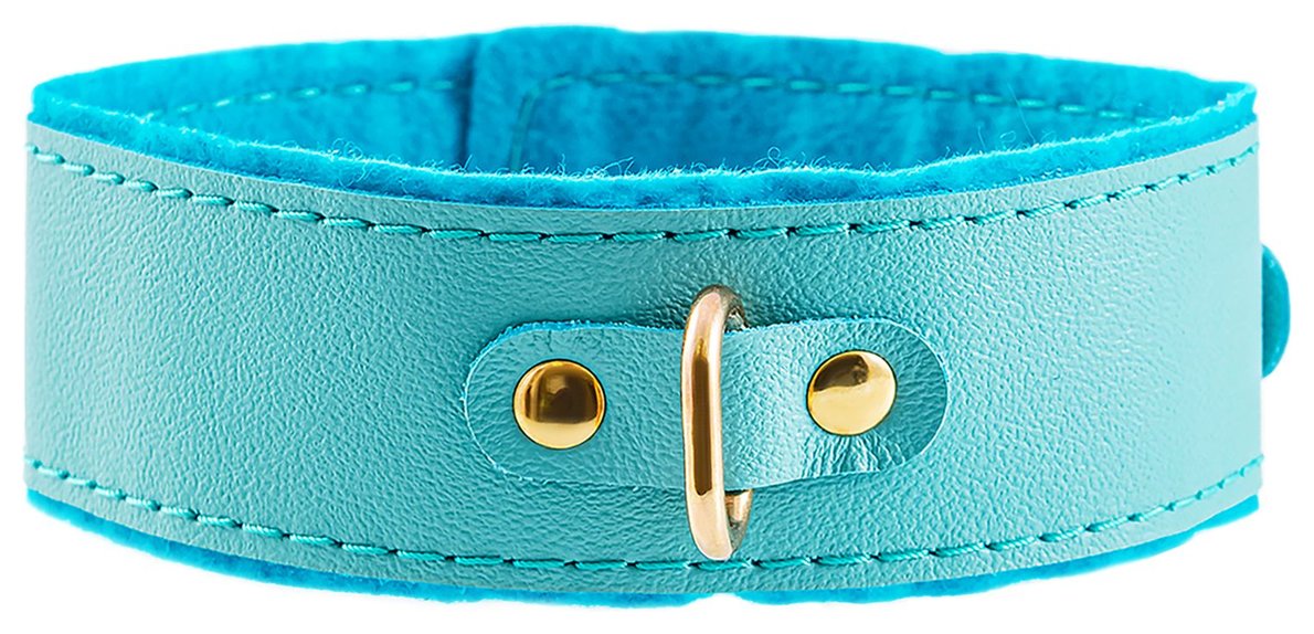Голубой двуслойный кожаный ошейник с подкладкой из фетра