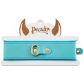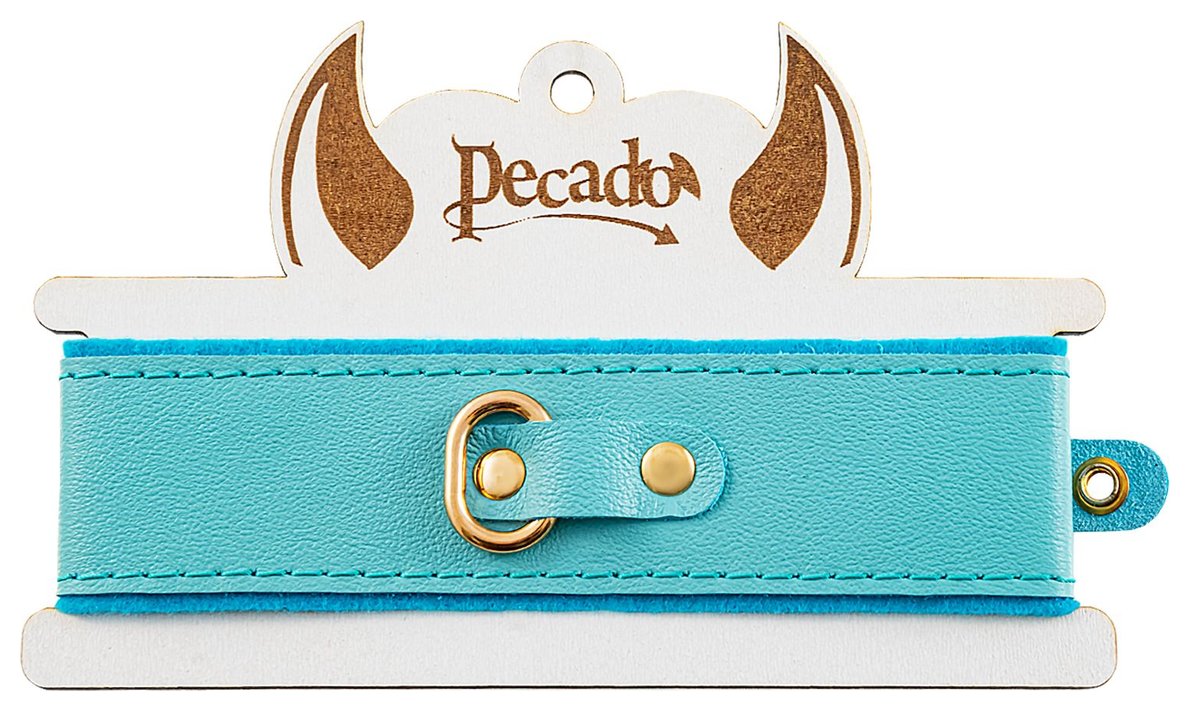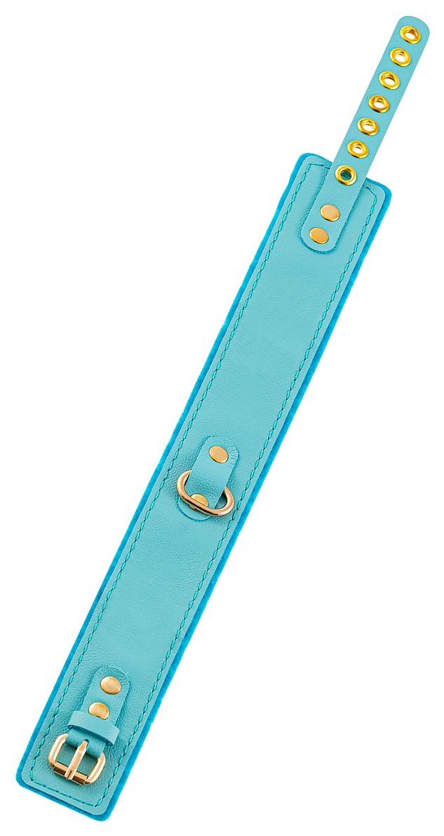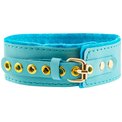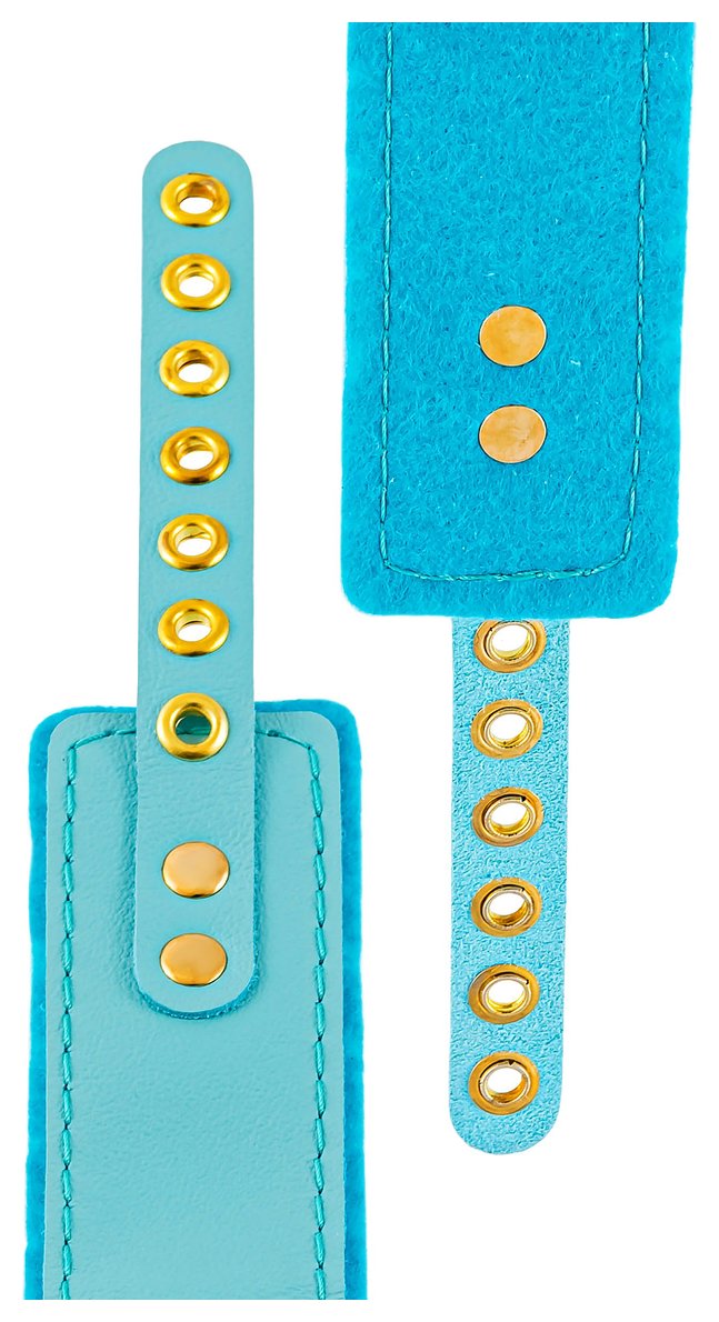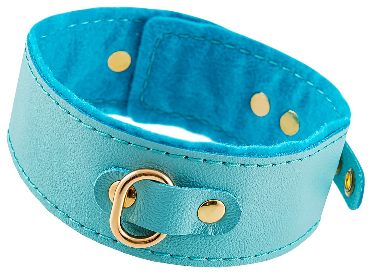 Голубой двуслойный кожаный ошейник с подкладкой из фетра