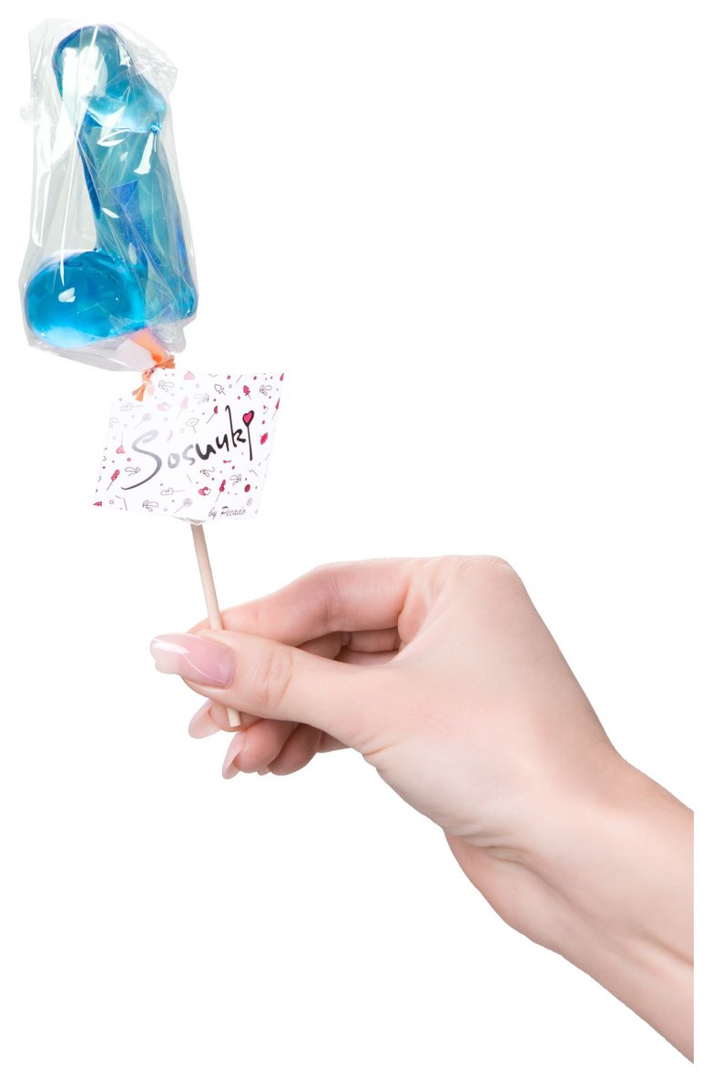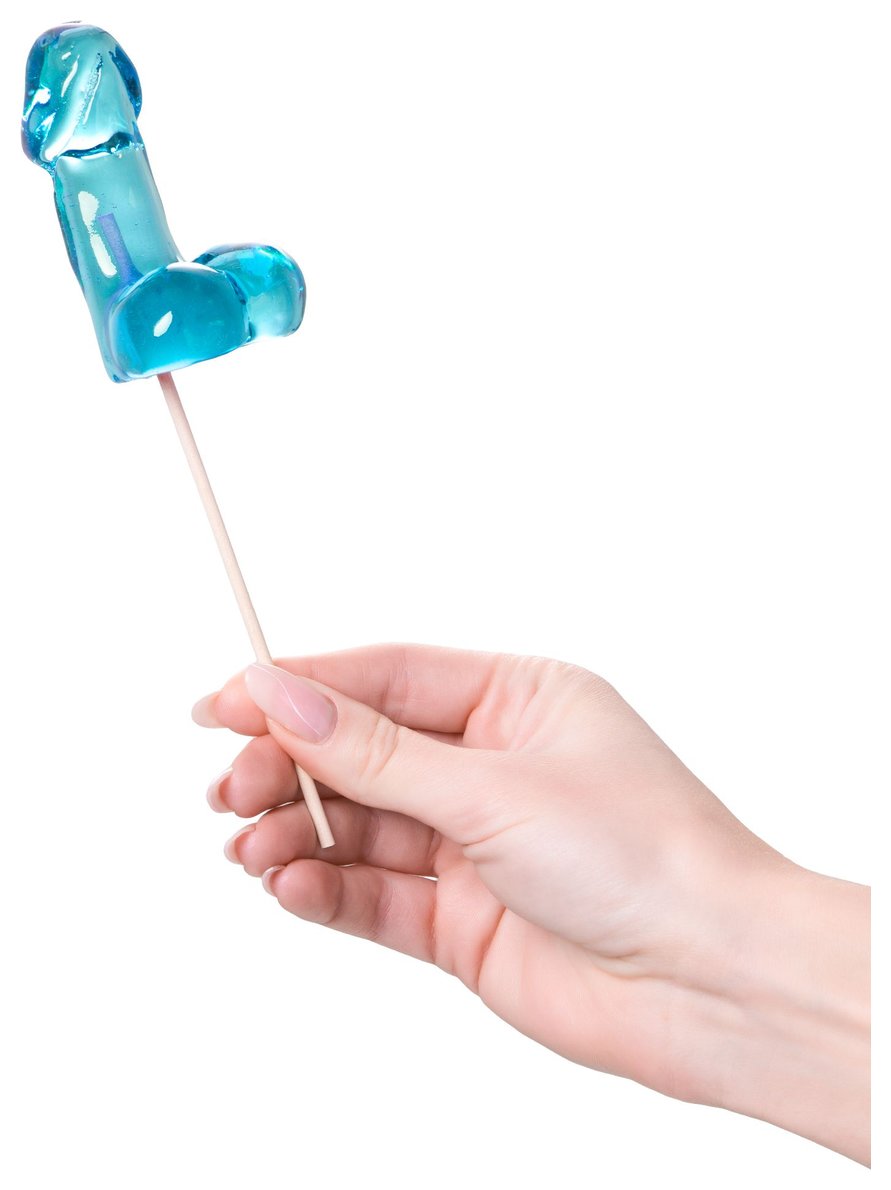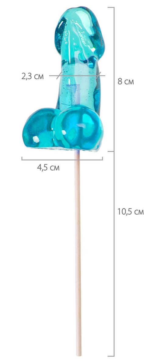 Голубой леденец в форме члена со вкусом блю кюрасао - 80 гр