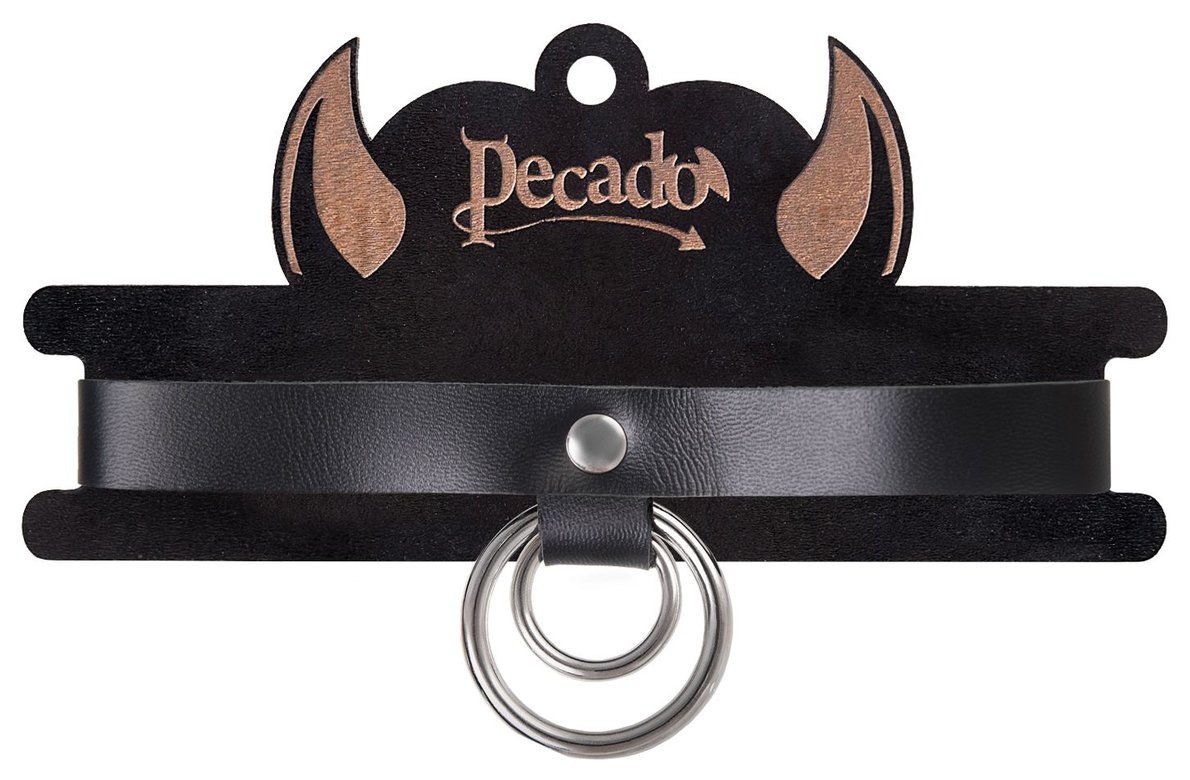 Покажите своему Господину, что Вы готовы подчиняться. Просто украсьте свой образ чокером от Pecado. Кожаный аксессуар из чёрного, износостойкого материала представлен в минималистичном дизайне. Тонкий, мягкий ремешок нежно обхватывает шею. Ручная выделка кожи обеспечивает приятный тактильный контакт. Атрибут легко и удобно застёгивается, хорошо фиксируется. Имеет широкий запас регулировок. При необходимости быстро расстегивается. Благодаря металлическим кольцам по центру, можно присоединить поводок или другие аксессуары. Подходит как для ролевых игр, так и для использования в качестве аксессуара в стильном образе. Ширина – 1,5 см.
