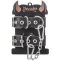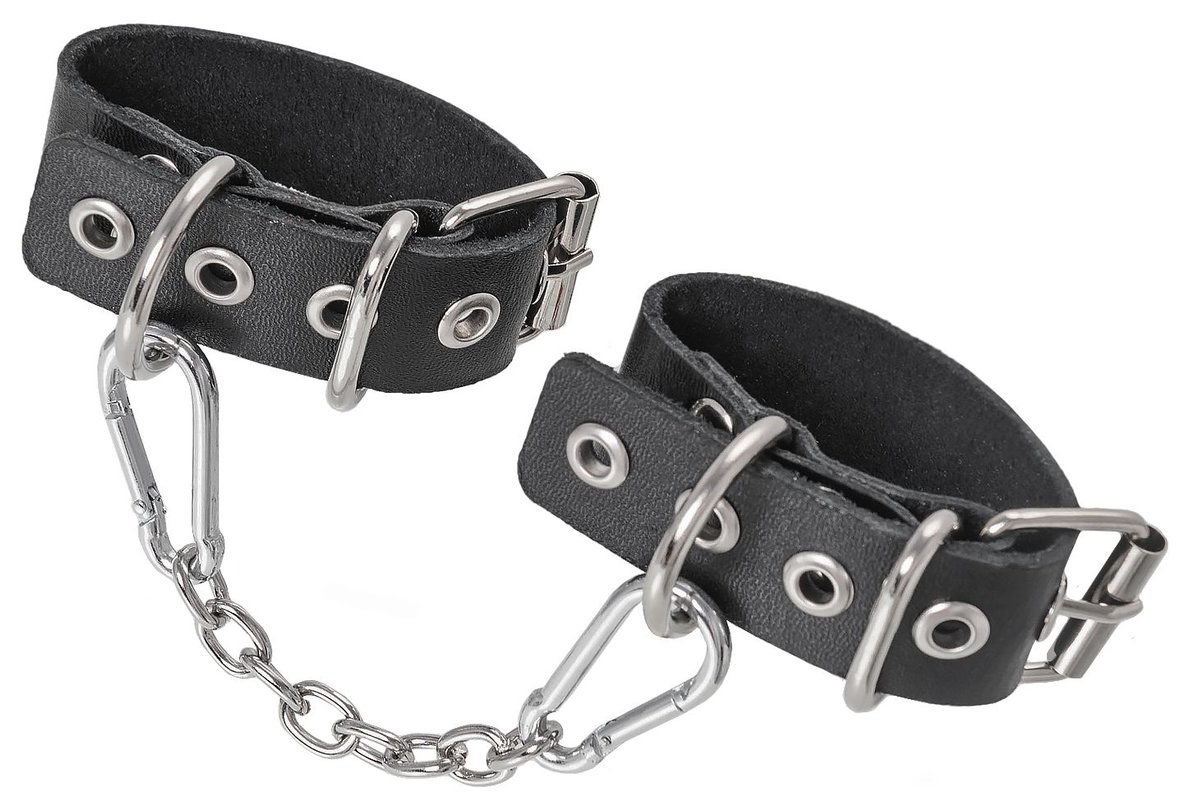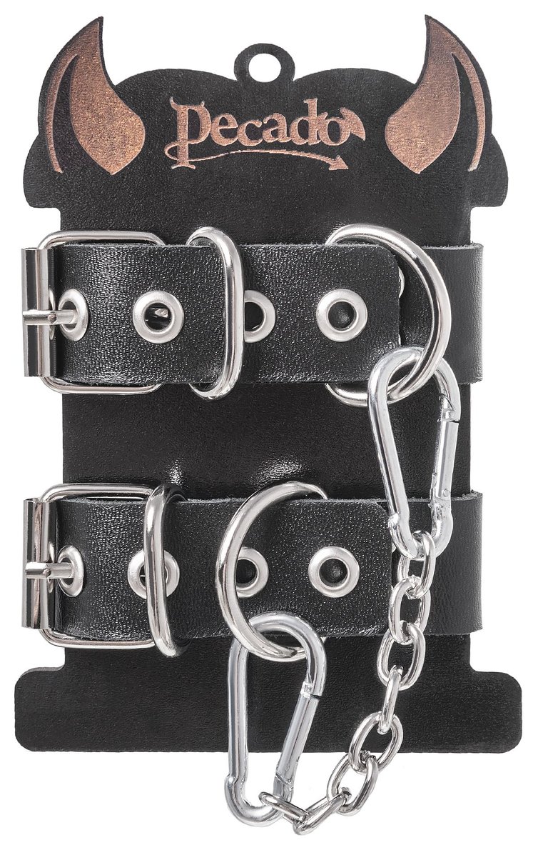 Брутальные наручники из одного ремешка от Pecado – отличный подарок партнеру к любому случаю. Во-первых, они незаменимая вещь для жестких ролевых игр. Во-вторых, отличный аксессуар-браслет на руку для повседневного и тематического look-а.Сексуальный атрибут изготовлен российским производителем. Специальная технология выделки кожи обеспечивает хорошую износостойкость. Черный материал прекрасно прилегает к телу и не оставляет следов. Подходят и мужчинам, и женщинам. Наручники декорированы большими стальными кольцами. Металлическая фурнитура высокого качества обеспечивает надежную фиксацию. Манжеты фиксируются между собой благодаря съемной, короткой цепочке. Длина ремешка – 23,5 см, ширина - 2,5 см. Длина сцепки – 14 см.