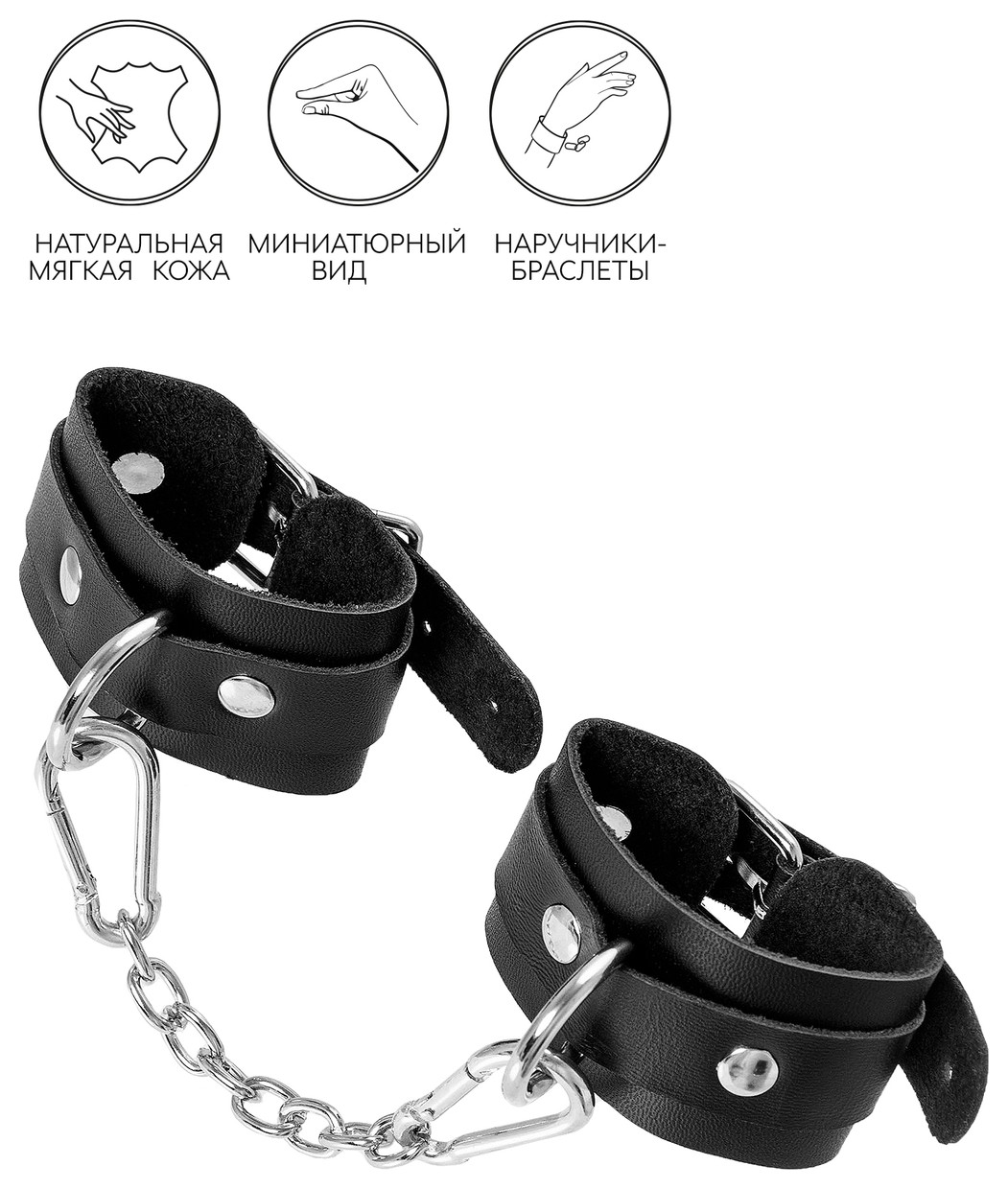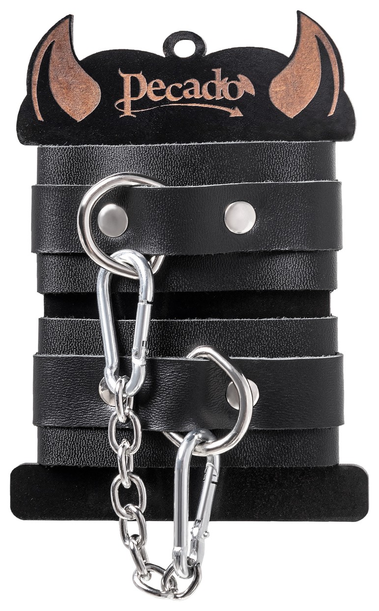 Ищите наручники для миниатюрной ручки? Тогда обратите внимание на эту модель от российского производителя Pecado. Они идеально созданы для обладательниц узкого запястья. Каждый элемент аксессуара изготовлен полностью вручную. Мягкий, чёрный материал нежно обхватывает руку и оставляет только приятные ощущения от контакта с телом. Аксессуар декорирован качественной фурнитурой, благодаря которой, при необходимости, его легко снять. Соединяются между собой с помощью короткой стальной цепочки и двух колец с карабинами. При правильном использовании не оставляют следов на теле. А особый аромат натуральной кожи придает пикантности сексуальному атрибуту. Подходит как для начинающих пар, так и для ценителей БДСМ-игр. Погрузитесь в мир пикантных удовольствий! Вместе с Pecado. Длина манжет – 15 см, ширина – 4 см. Длина сцепки – 14 см.