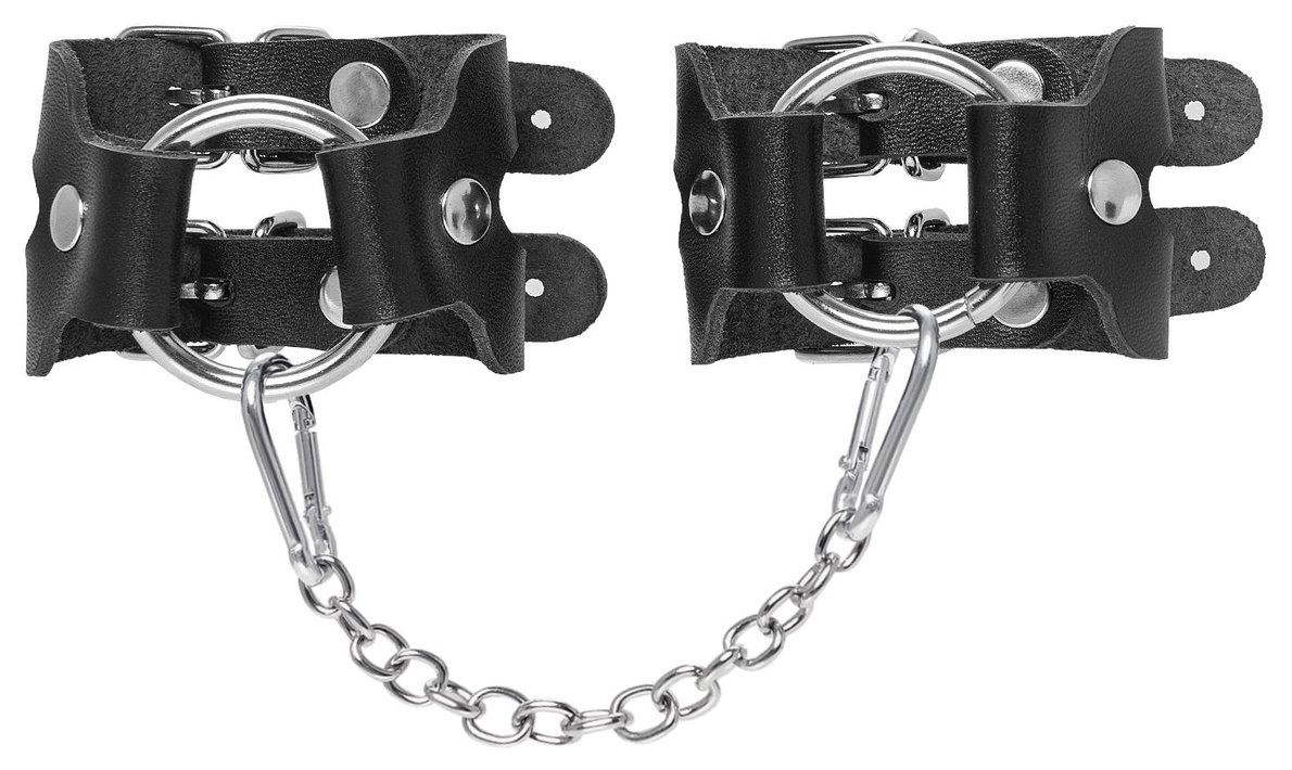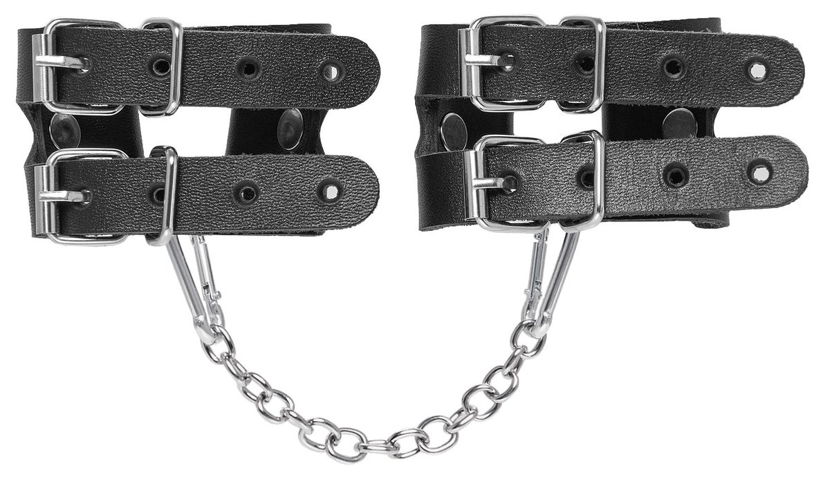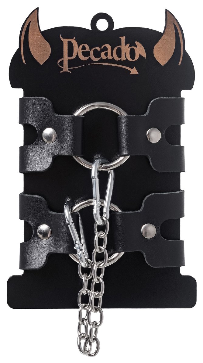 Материал износостойкий, тактильно приятный. Благодаря качественной металлофурнитуре, аксессуар надежно фиксируется. Не расстегивается при активном использовании в процессе игр. Манжеты соединены между собой с помощью двух карабинов и короткой цепочки. При необходимости, можно использовать как более длинные цепи, так и другие аксессуары. Подходит для пар, которые только познают азы БДСМ-культуры, а также более опытным ценителям жестких игр. Погрузитесь в мир особых чувств и желаний! Вместе с Pecado. Длина ремешков - 8 и 12 см. Ширина ремешков - 1,6 см. Длина сцепки – 24 см.
