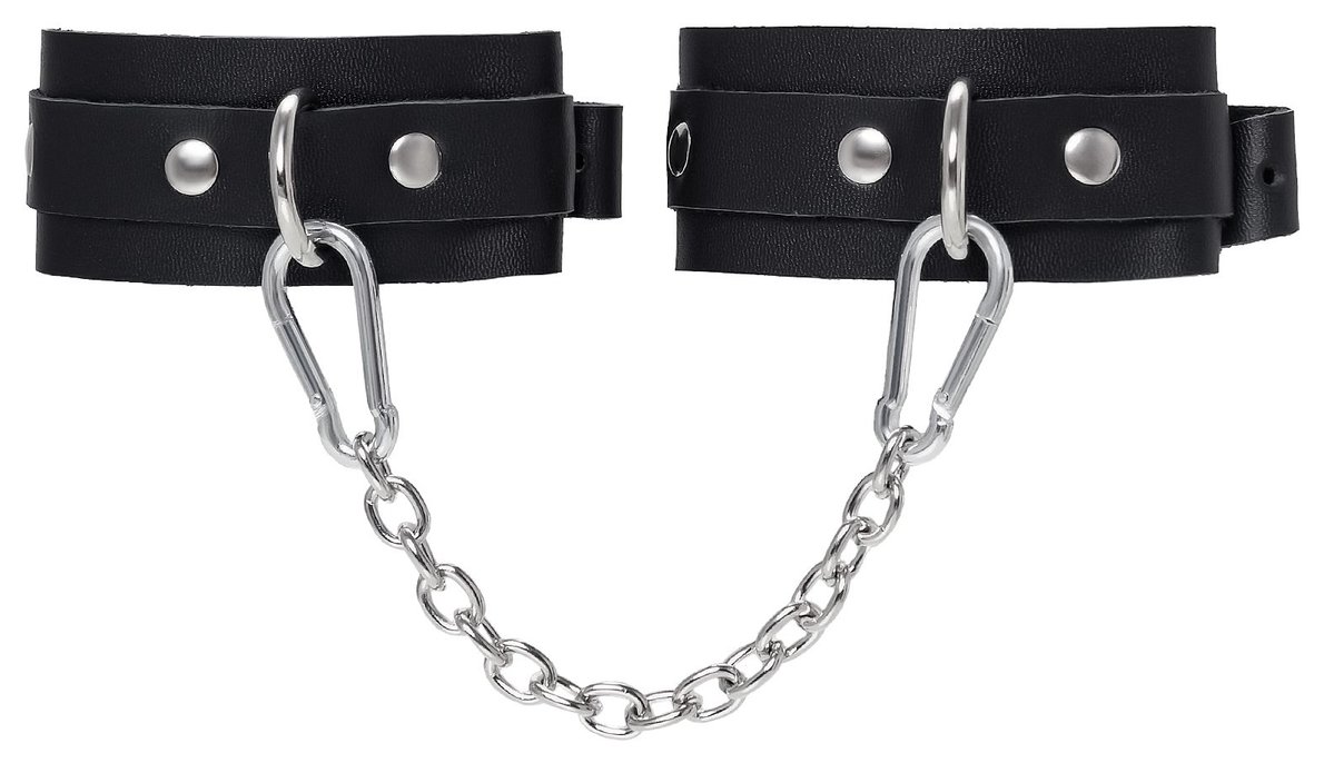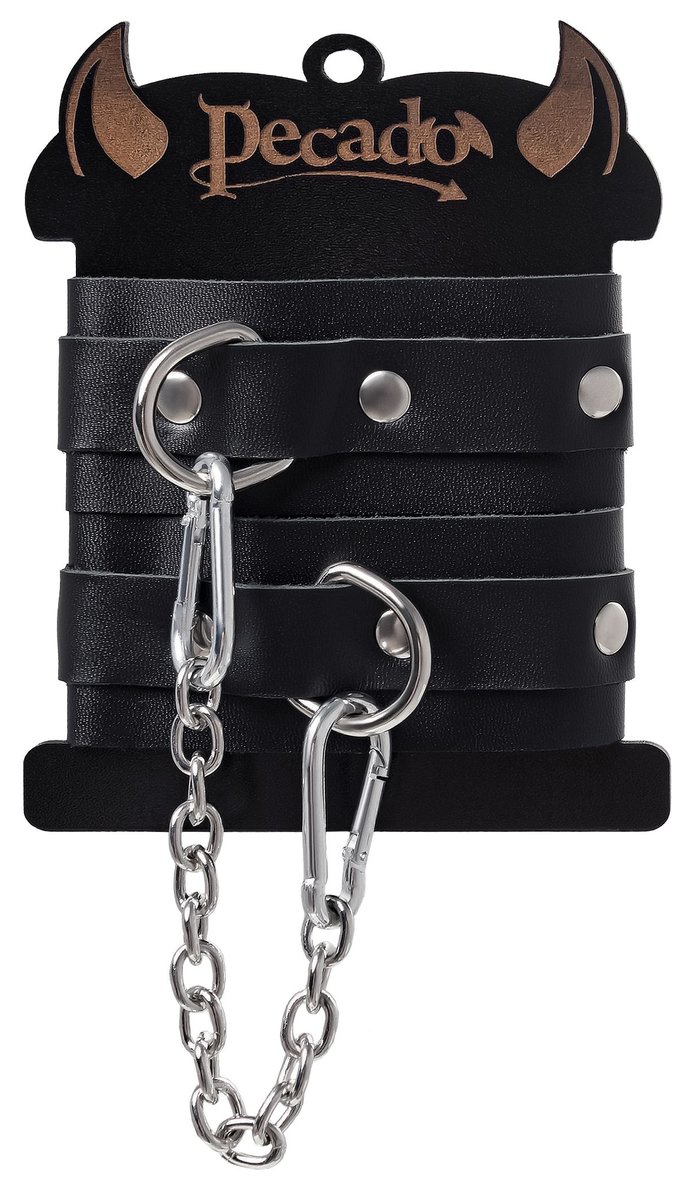 Материал оков мягкий, прочный, не оставляет следов на теле. Крепкие люверсы на каждом ремешке и замок помогают легко расстёгивать и застегивать девайс. Манжеты оков соединяются между собой короткой, металлической цепью. Отлично подходят и неопытным парам, и знатокам БДСМ-культуры. Погрузитесь в мир пикантных удовольствий! Вместе с Pecado. Длина манжет – 15 см. Ширина ремешка – 4 см. Длина сцепки – 19 см.