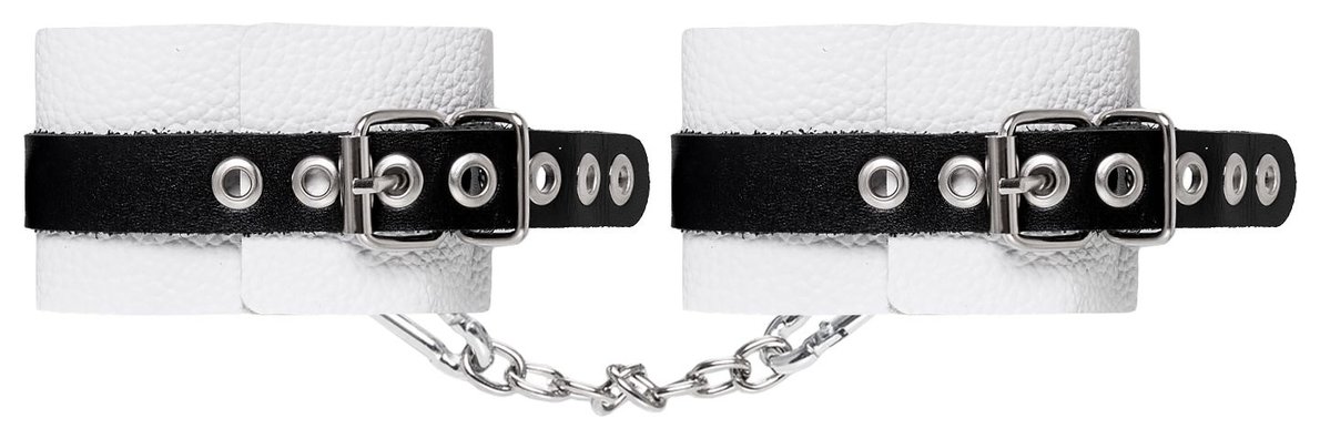 Бело-черные мягкие оковы с одним ремешком и люверсами