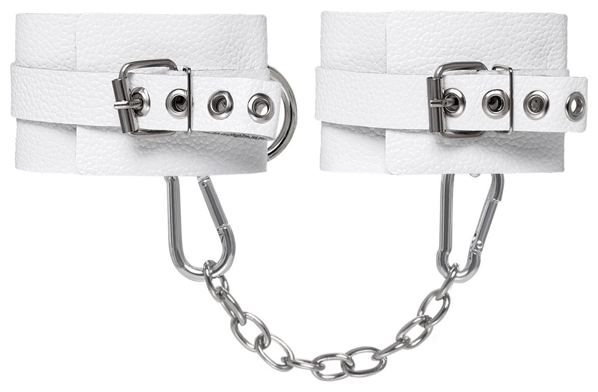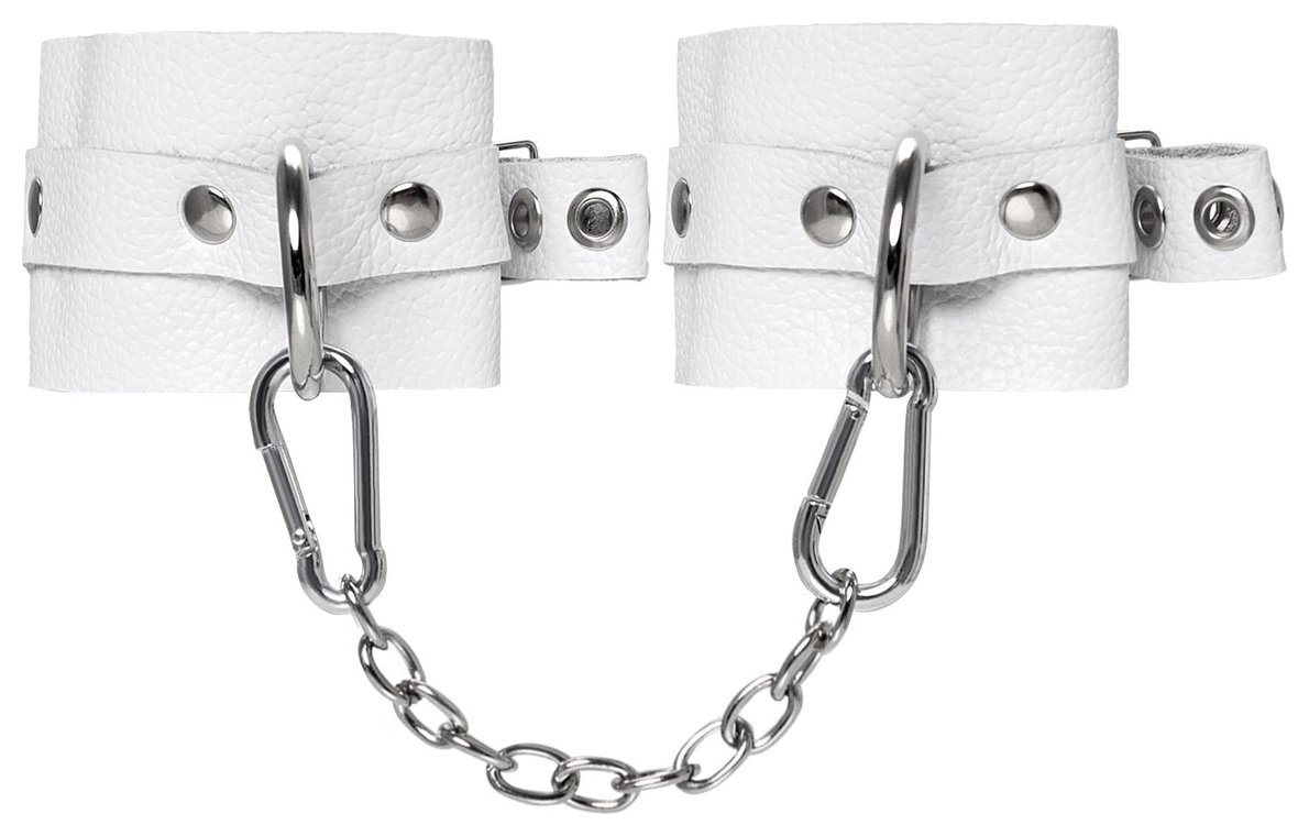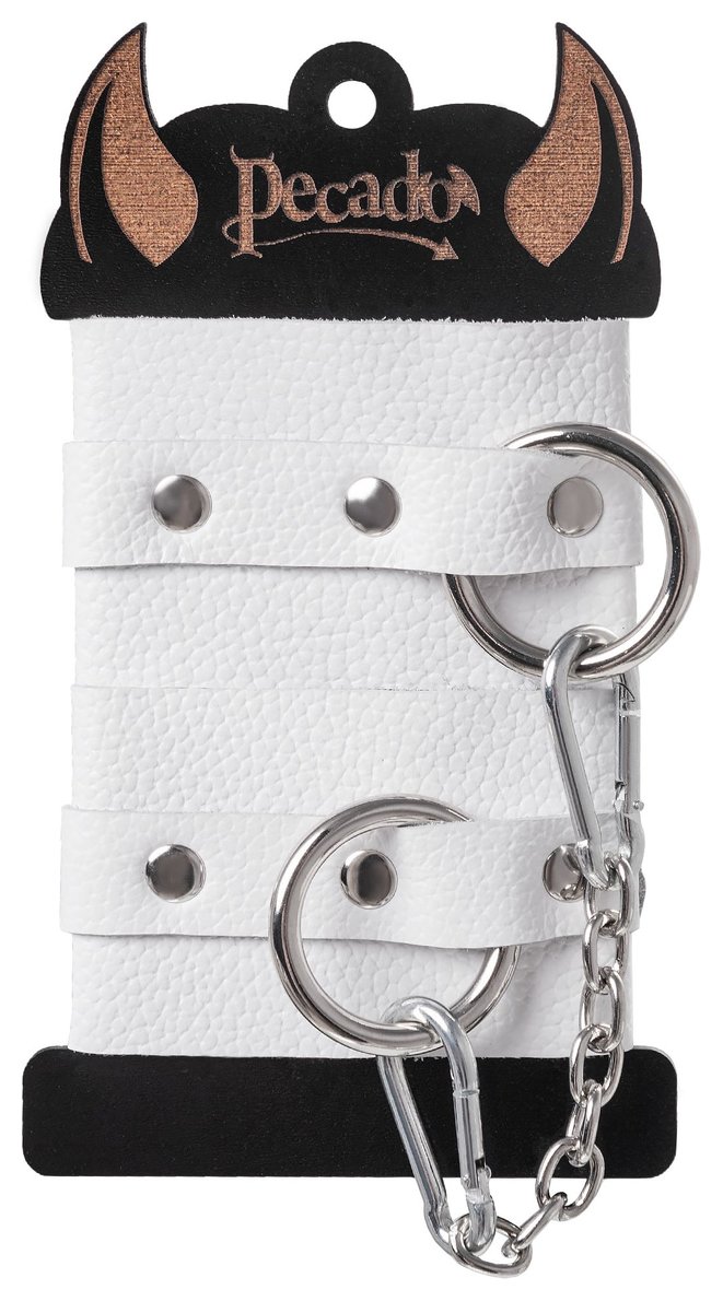 Самый мягкие наручники из всего ассортимента Pecado. Лаконичный дизайн, насыщенно белый цвет и терпкий аромат материала - повышают градус возбуждения в процессе ролевых игр. Наручники выполнены из экологичной и натуральной кожи. Полностью ручная выделка материала обеспечивает хорошую износостойкость. Каждый миллиметр аксессуара очень тактильно приятный. Манжеты и ремешки не мнутся. При правильном использовании не оставляют следов на запястьях. Благодаря стальной застежке и отверстиям с люверсами можно подобрать нужный обхват. Между собой наручники соединены с помощью карабинов и короткой цепочки. При необходимости ее можно снять и заменить на более длинный вариант. Используется для того, чтобы обездвижить партнера и зафиксировать руки в необходимом положении. Подходит как маститым знатокам БДСМ-культуры, так и начинающим парам. Длина манжет – 18 см, ширина - 5,5 см. Длина сцепки – 20 см.