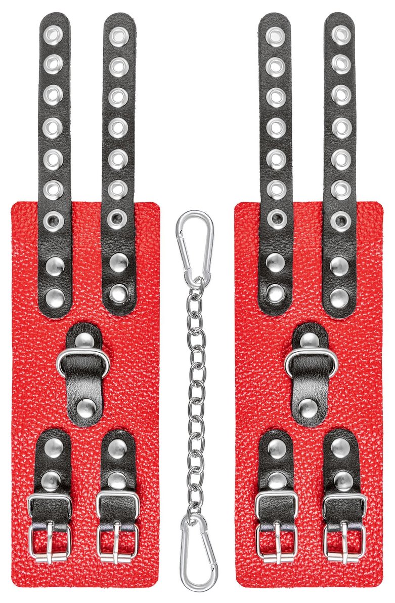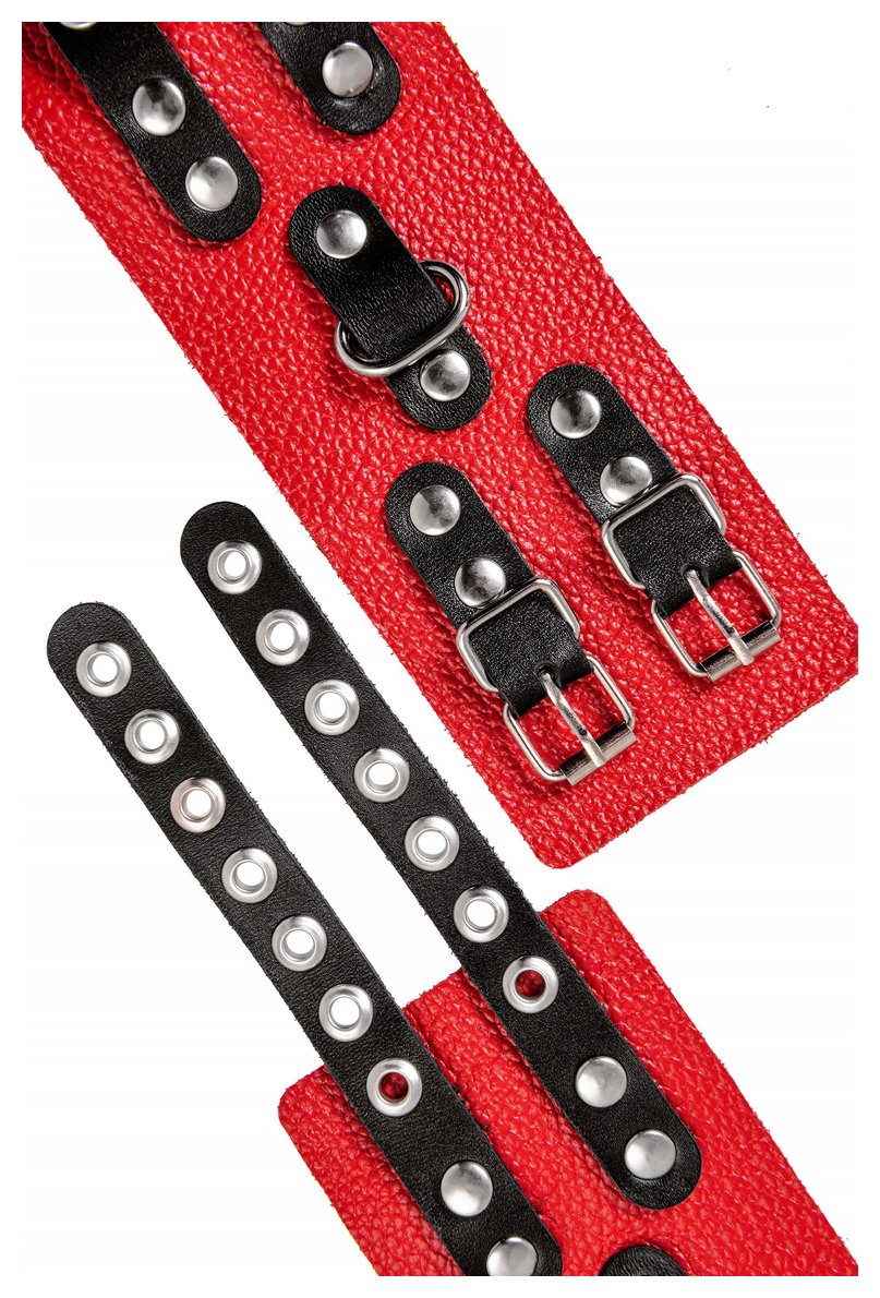 Красно-черные мягкие наручники с двумя ремешками с люверсами