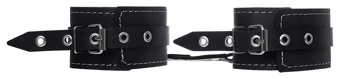Черные двухслойные кожаные оковы с белой строчкой