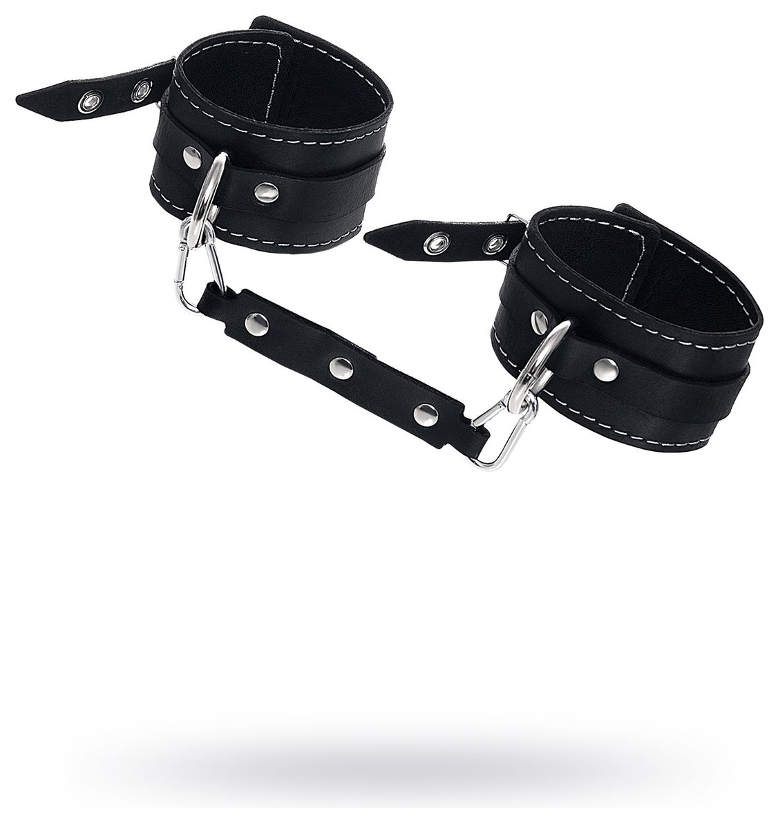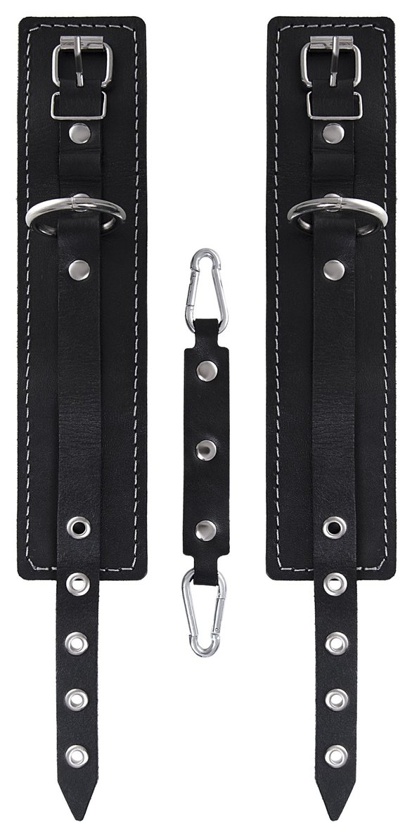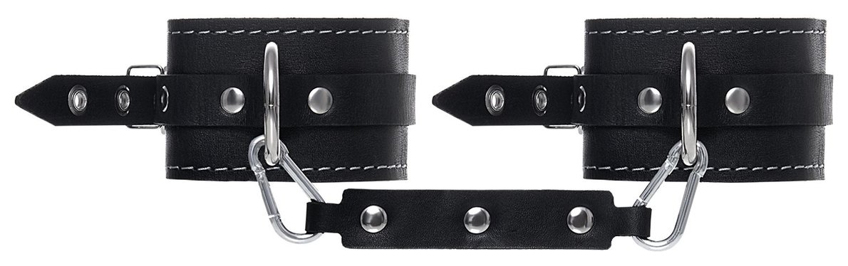 Готовы играть по-взрослому? Не бойтесь своих желаний! Основатели бренда уверены: лучший способ избавиться от искушения - поддаться ему! Добавьте пикантную деталь в ролевую игру и воплотите самую смелую сексуальную фантазию в реальность! Эти кожаные оковы с белой отстрочкой могут стать стильным аксессуаром, а могут послужить вашим целям по своему прямому назначению. Частичное обездвиживание и невозможность двигать руками или ногами дают вам полную власть над партнером! Наличие двух карабинов и колец позволяет использовать изделие как раздельно – аксессуар-манжеты, так и как оковы для фиксации. К широким металлическим кольцам также можно присоединить и другие аксессуары при помощи карабинов. Благодаря универсальному размеру оковы могут использоваться и мужчинами, и женщинами.