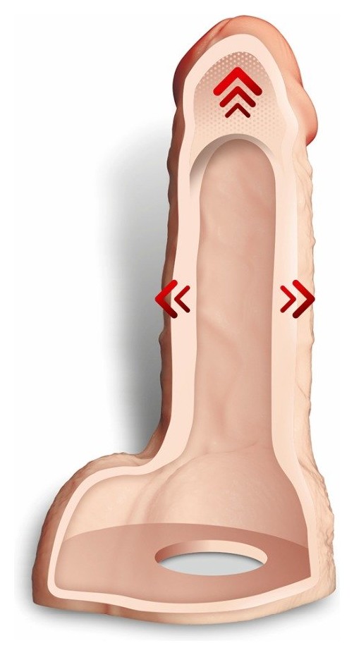 Фаллоудлинитель из материала Neoskin — это насадка, которая полностью охватывает мужские половые органы: фаллос и мошонку, как толстостенный презерватив. Идеально растягивается (до 600%) и легко надевается через отверстие в основании — обеспечивает комфорт и точность формы при любом размере.