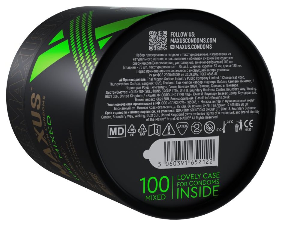 Презервативы Maxus Mixed — незаменимый атрибут истинного джентльмена. Два вида презервативов — классически и точечно-ребристые — позволяют экспериментировать с удовольствием: легкое скольжение, максимально естественные ощущения или дополнительная стимуляция партнерши. Каждый презерватив покрыт обильной смазкой, которая делает проникновение приятным и защищает нежную кожу партнерши от натираний и микротравм. Высококачественный натуральный латекс проходит строгий контроль на всех этапах производства и обеспечивает безупречную защиту от нежелательной беременности и ЗППП. В упаковке - 12 шт. Номинальная ширина - 53 /-2 мм. Толщина стенки - 0,06-0,08 мм. - Регистрационное удостоверение РФ: ФСЗ 2008/03067 - Дата регистрации медицинского изделия: 02.09.2019 г. - Срок действия регистрационного удостоверения: бессрочно - Представитель изготовителя медицинского изделия: ООО «Атекс Групп», 140055, Россия, Московская область, г. Котельники, микрорайон «Белая дача», промзона ООО «Технопром», стр. Е, офис 303 - Номер модели: 3864715