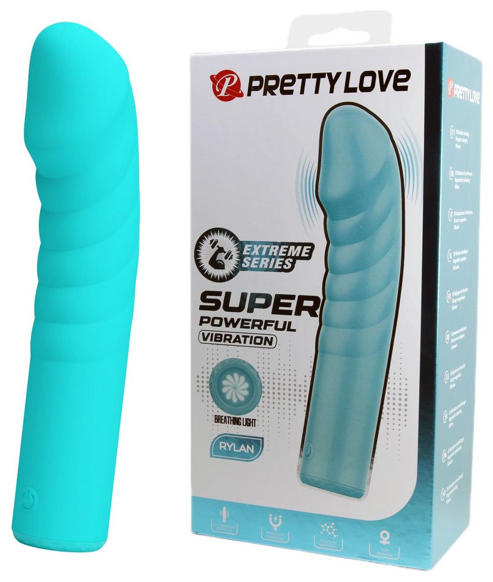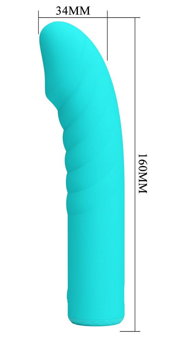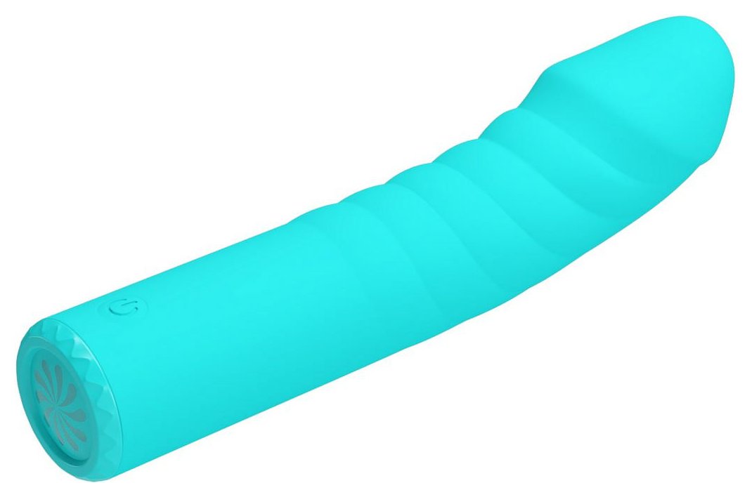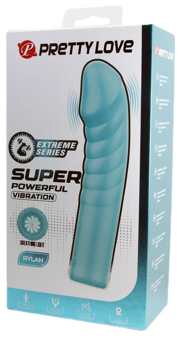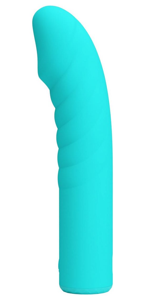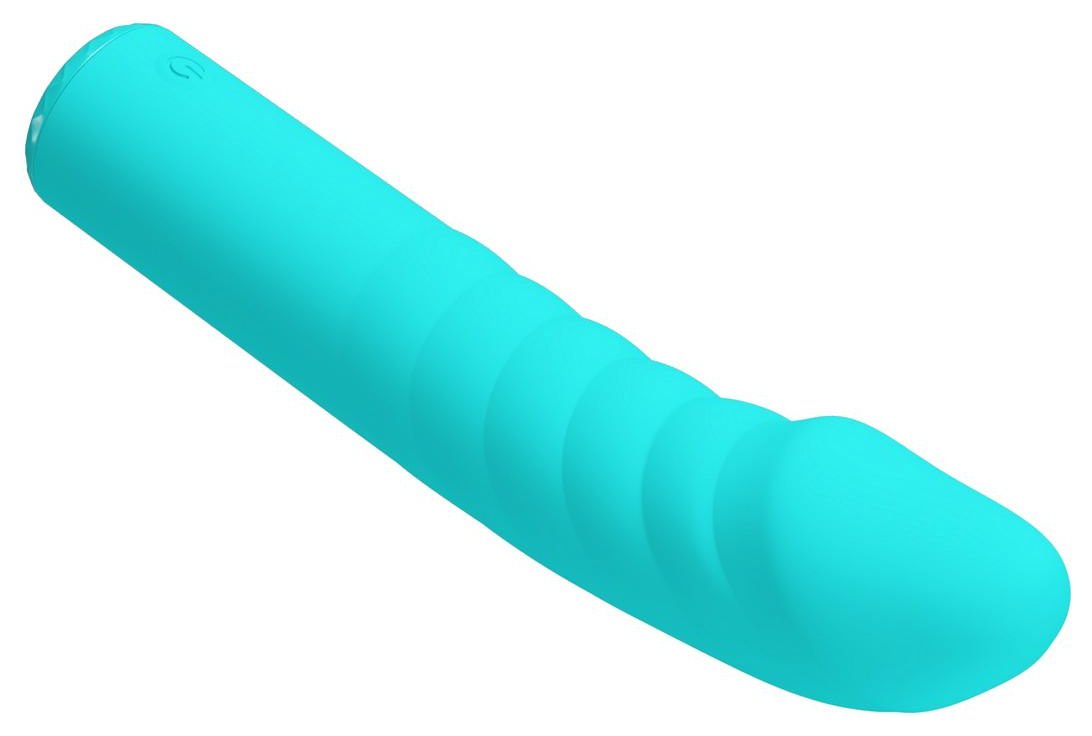 Аквамариновый вибромассажёр Rylan. Изогнутый ствол с ребрышками. Мощная вибрация.
