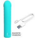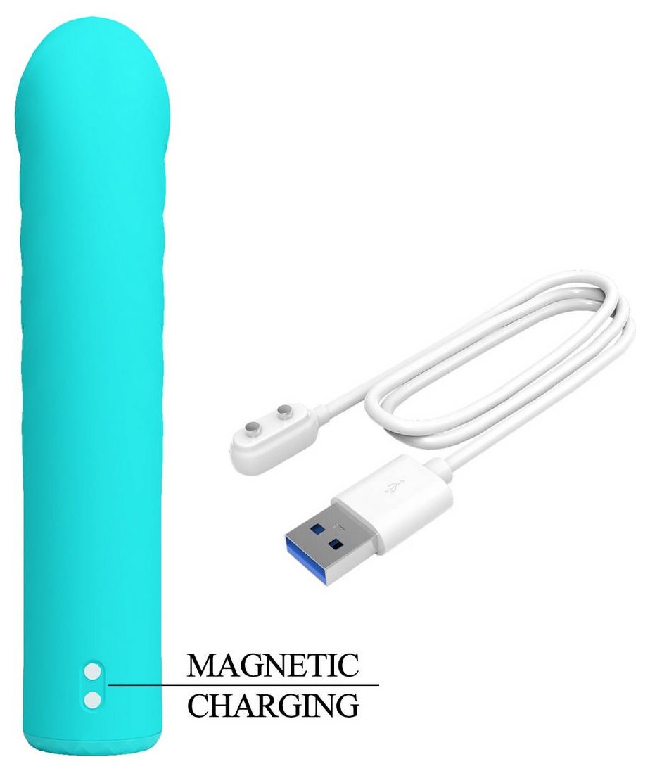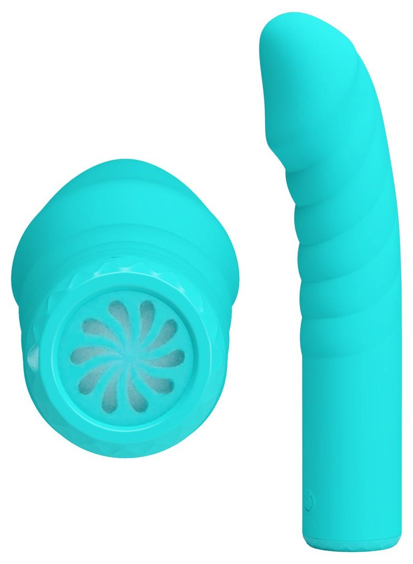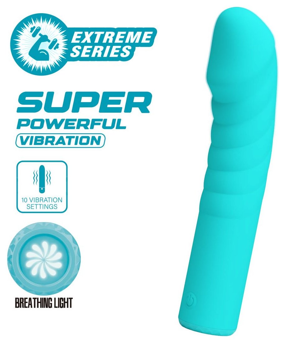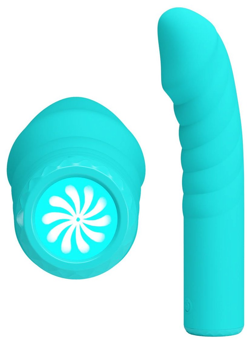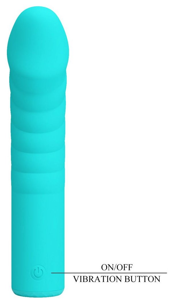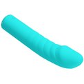 Аквамариновый вибромассажёр Rylan. Изогнутый ствол с ребрышками. Мощная вибрация.